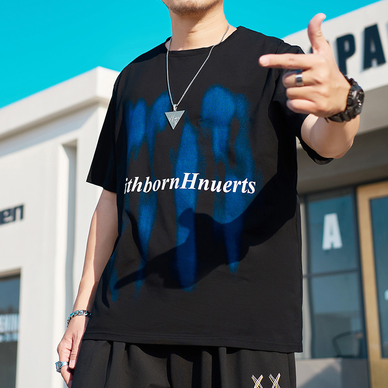 伟臣潮牌大码男装涂鸦印花短袖T恤男胖子加肥加大宽松肥佬体恤男
