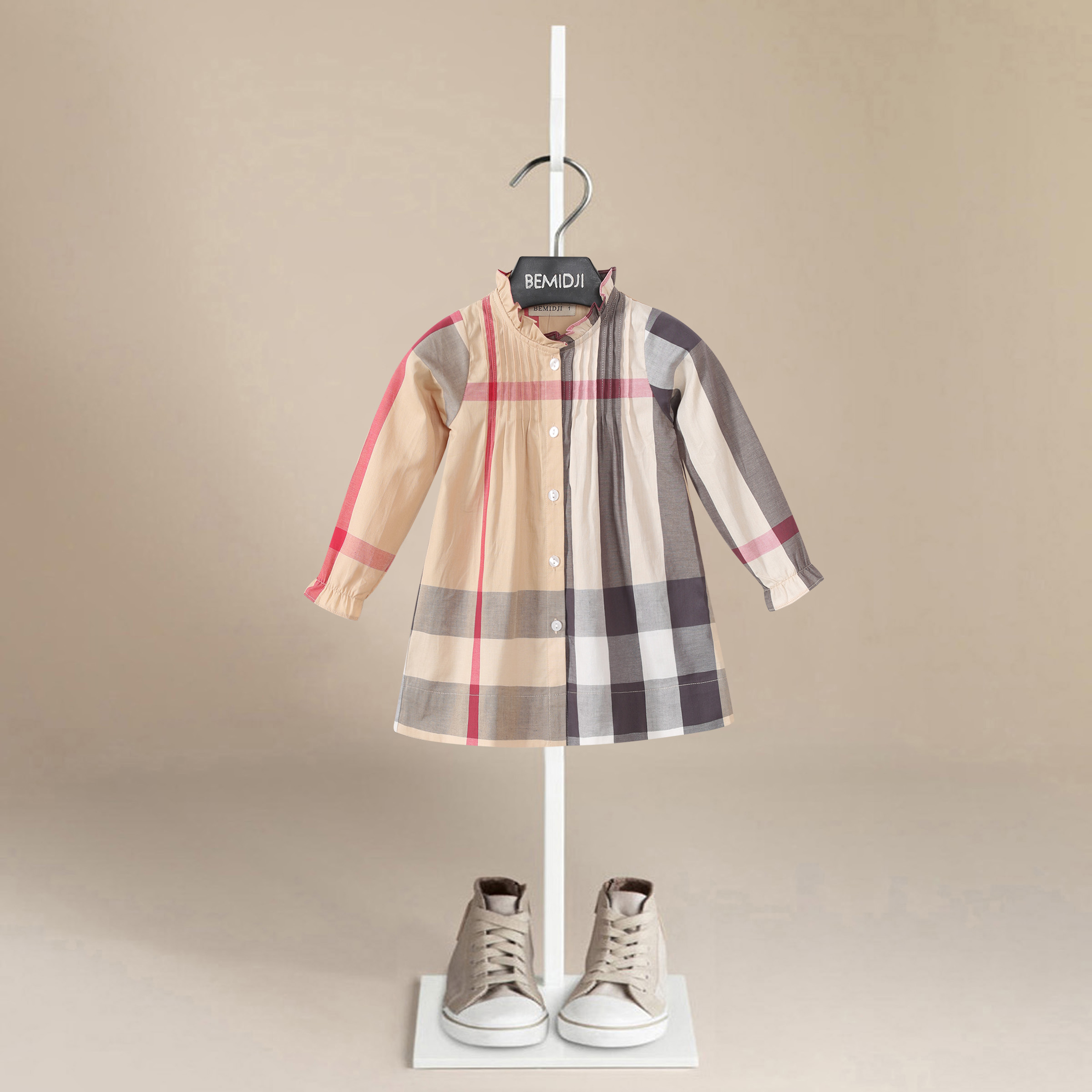 美拉德风春秋装女童枣红色格纹连衣裙公主裙纯棉伯米吉英伦风童装