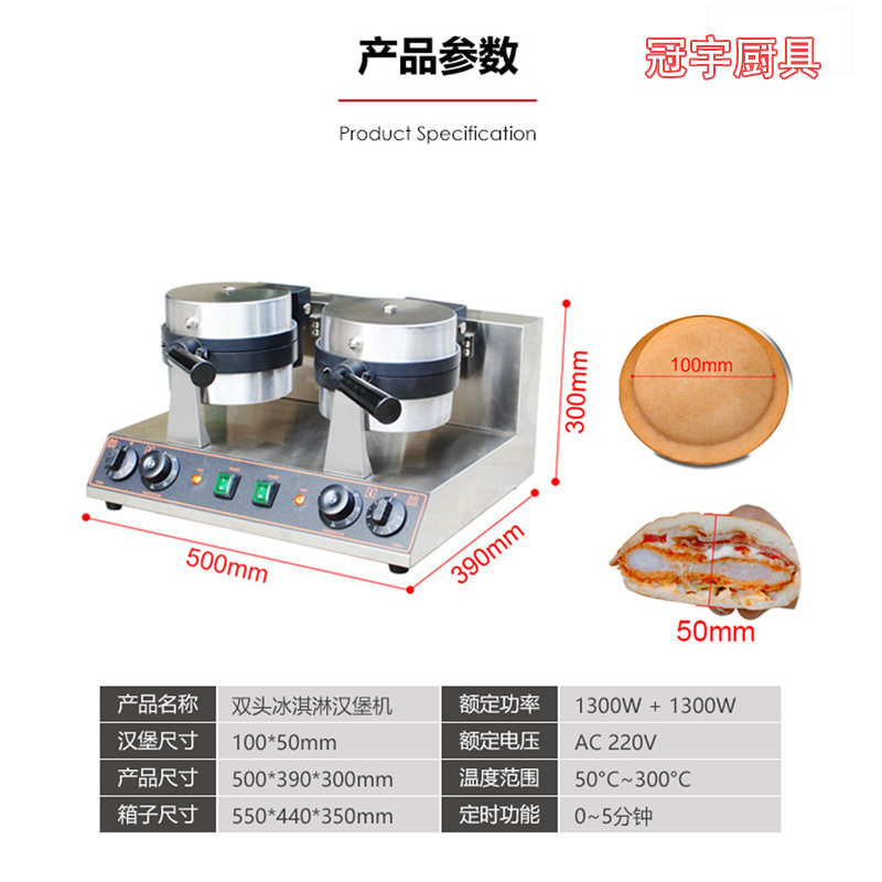 跨境商用双头UFO冰淇淋汉堡机电热款网红飞碟汉堡摆摊小吃设备