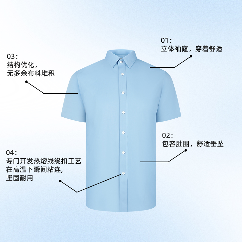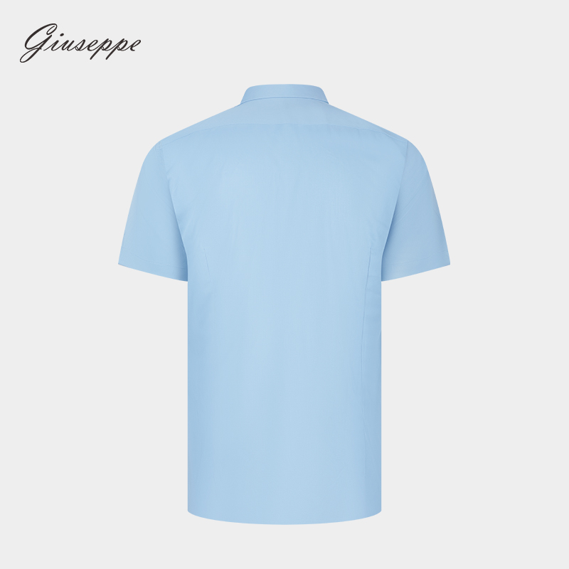 【商场同款】乔治白夏季男士短袖衬衫尖领天蓝色商务修身微弹衬衣