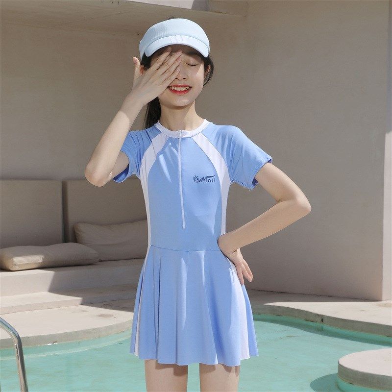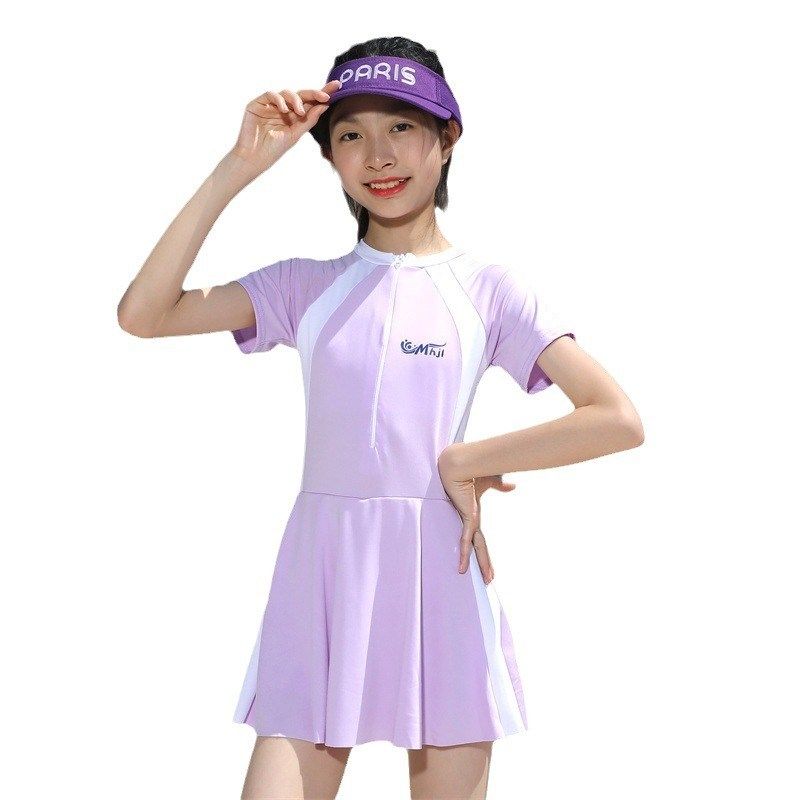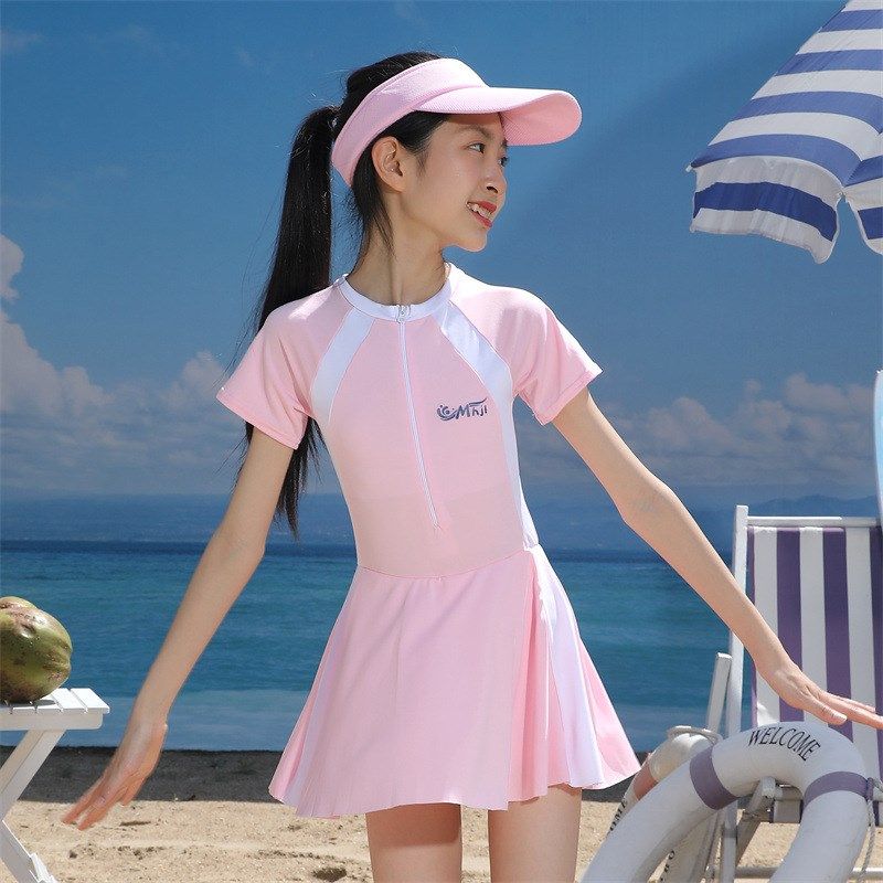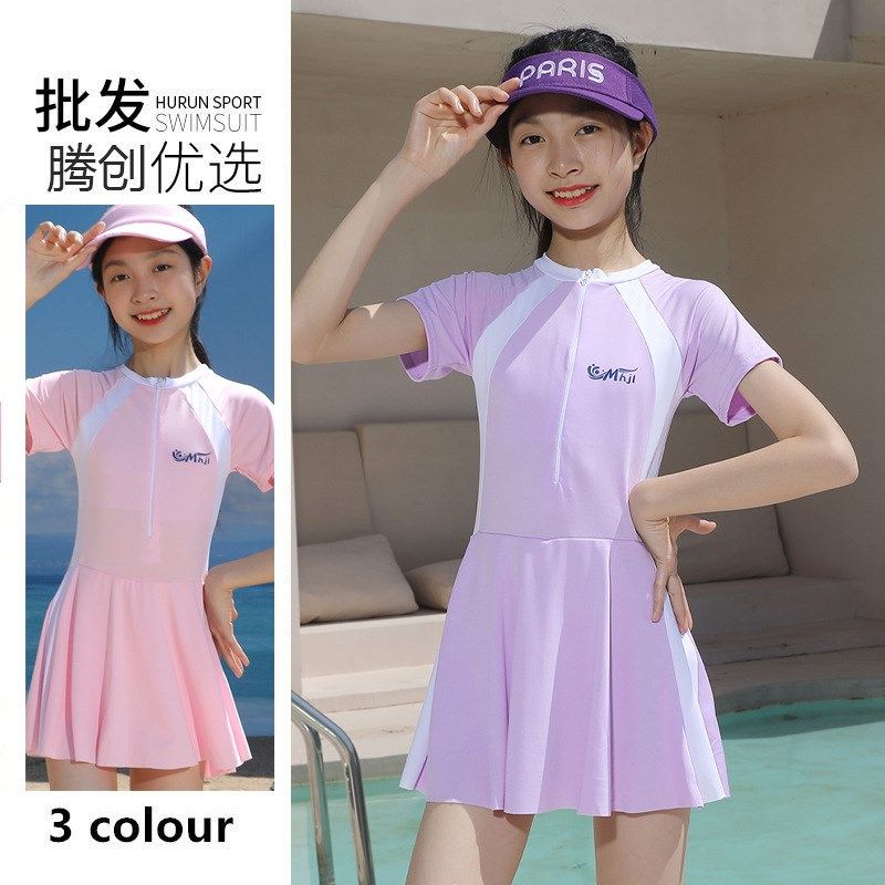 儿童泳衣女孩连体2024新款女童中大童初中生保守游泳专业训练泳装