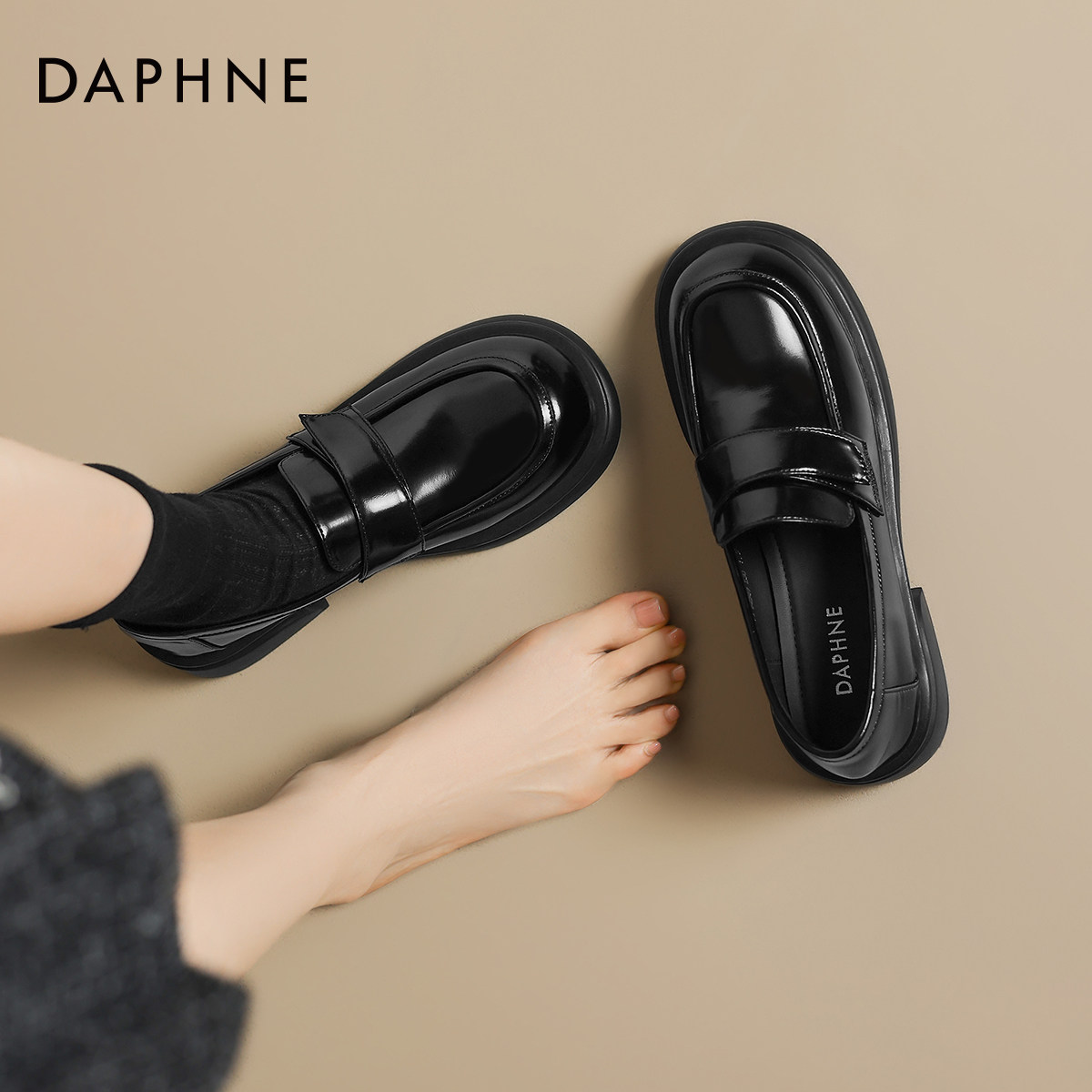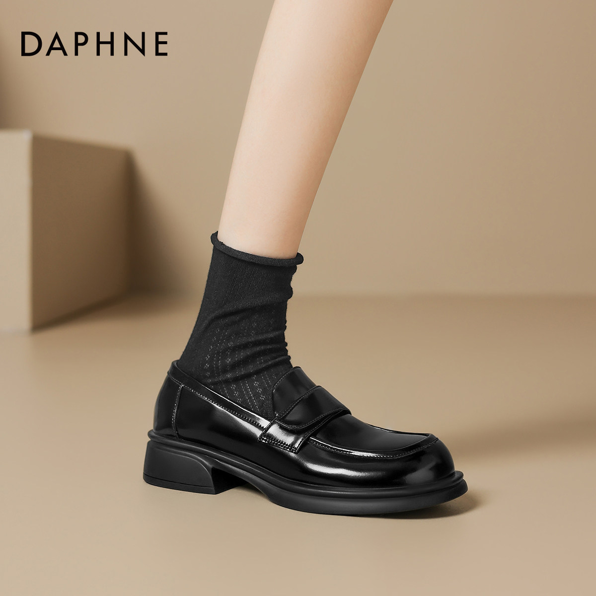 达芙妮乐福鞋女2025新款英伦风黑色小皮鞋女款通勤女鞋平底鞋单鞋