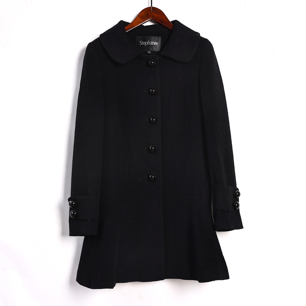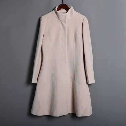 2025年秋冬季新品女式简约纯色保暖时尚加厚中长款毛呢外套大衣潮