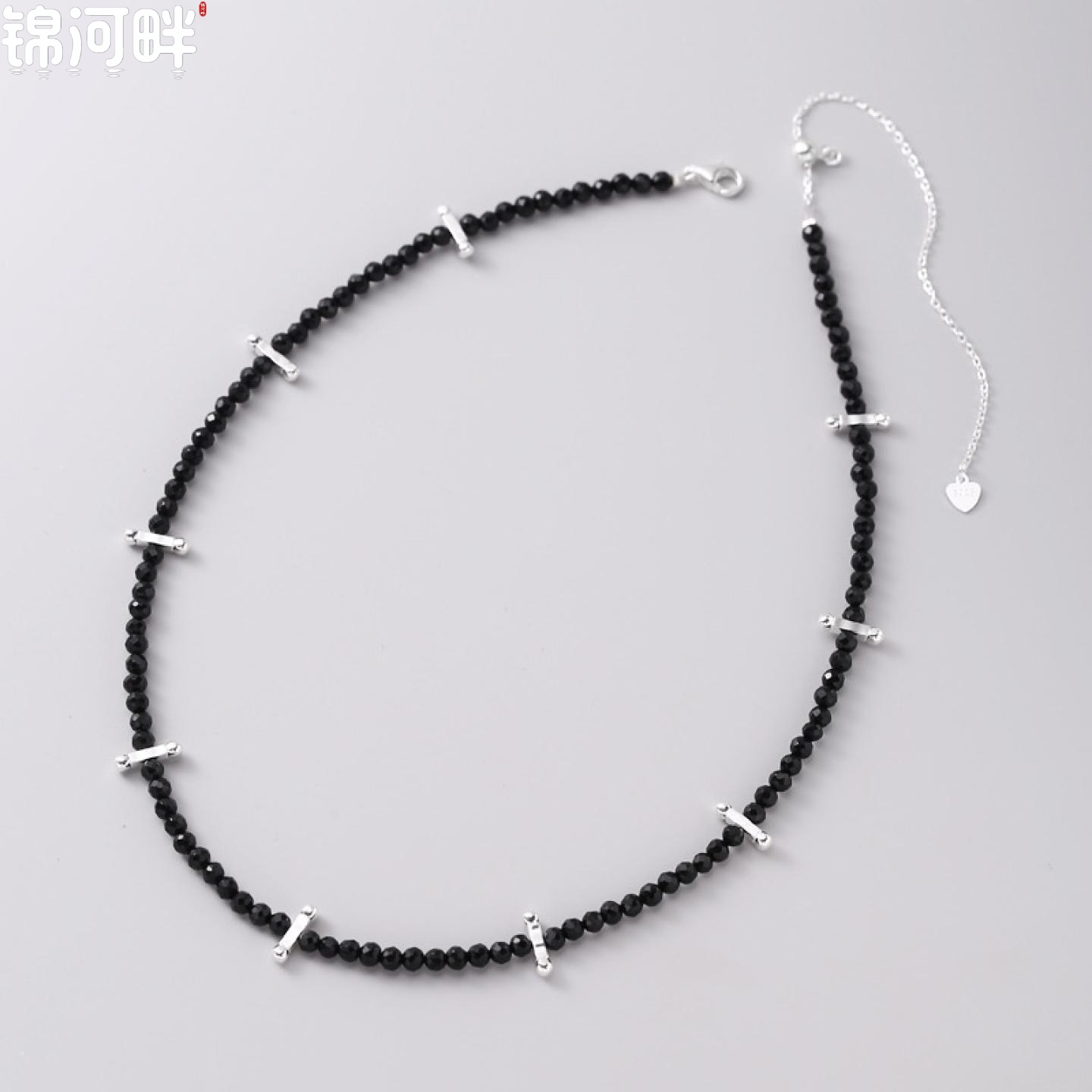 锦河畔 925纯银黑尖晶项链女横杠简约新中式国风设计锁骨链2023