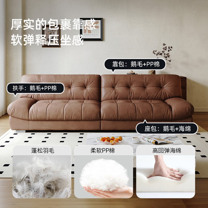 慕思集团旗下艾慕沙发真皮简约客厅小户型直排大坐深复古风云朵