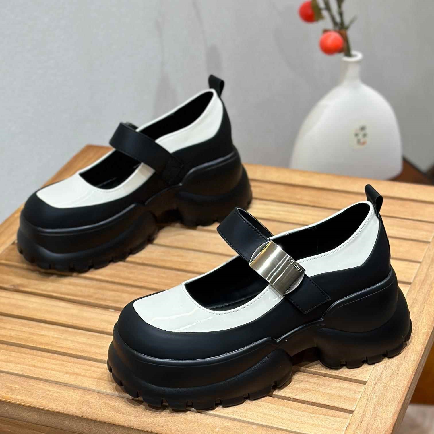 厚底增高玛丽珍鞋女2024春季松糕增高7cm小皮鞋学院风乐福鞋单鞋