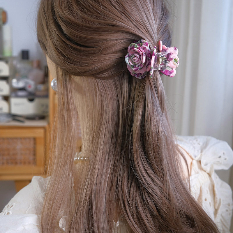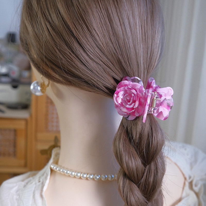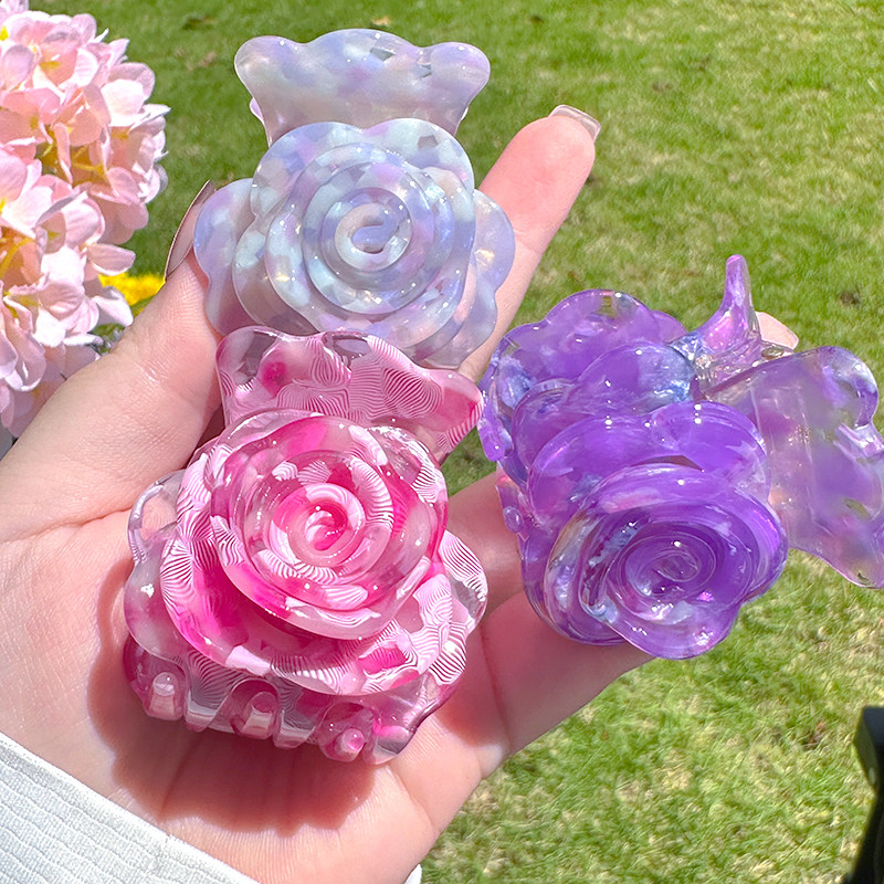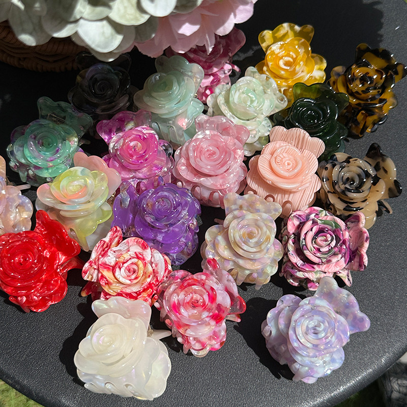【玫瑰花】粉色红色醋酸抓夹鲨鱼夹新款气质温柔百搭顶抓发饰发夹