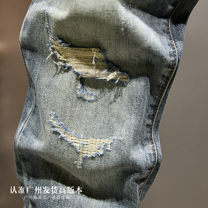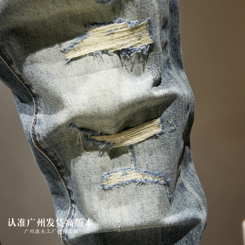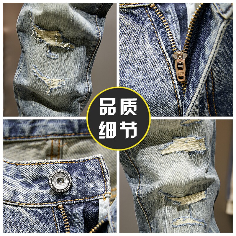 破洞做旧水洗九分牛仔裤男款