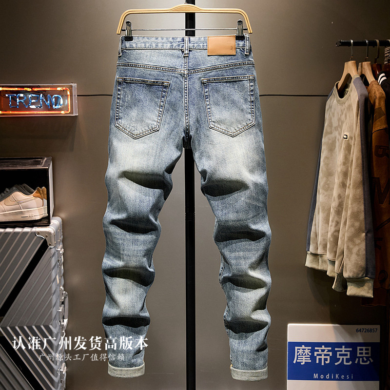 破洞做旧水洗九分牛仔裤男款潮牌高街痞帅9分修身小脚裤2026复古