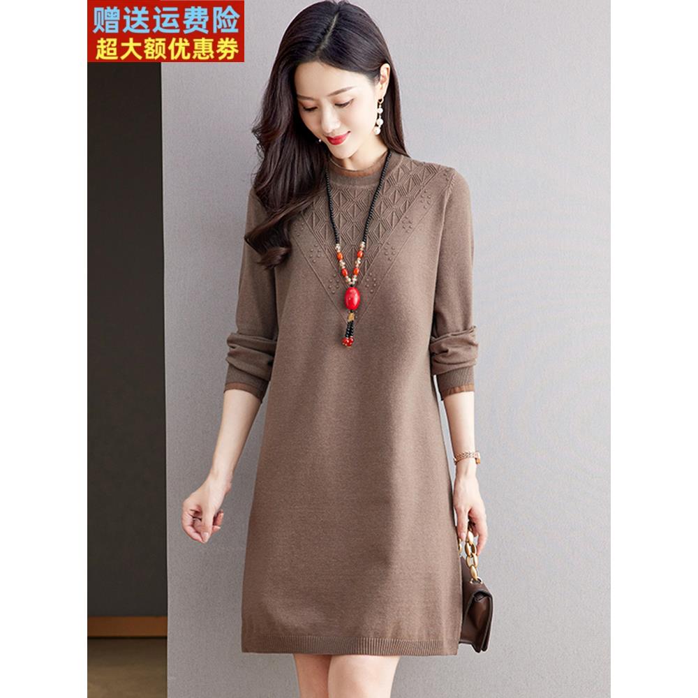 毛衣裙女羊毛宽松中长款2024秋冬季大码针织裙时尚显瘦打底连衣裙