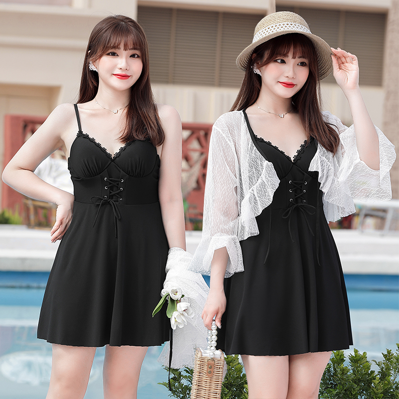 胖mm200斤碎花泡温泉分体三件套大码泳衣女遮肚显瘦聚拢大胸性感