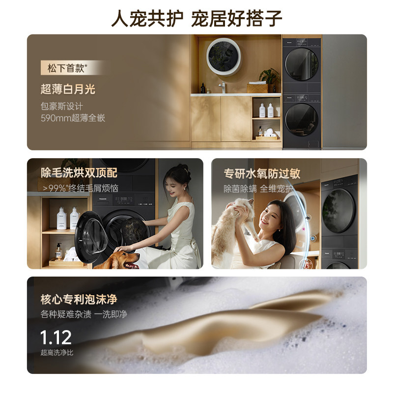 [白月光5.0]松下洗烘套装家用全自动洗衣机热泵全嵌F2J1+F2JR1