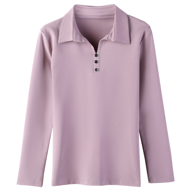 翻领纯棉长袖t恤女士纯色有带领子运动休闲Polo衫工作服体恤上衣
