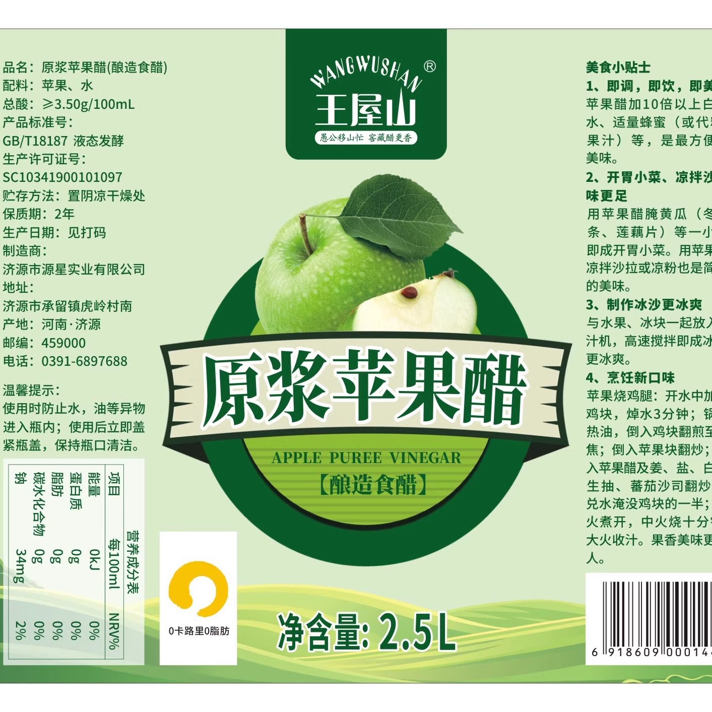 苹果醋原浆无糖型0脂0卡天然浓缩酿造凉拌沙拉健康水果醋饮大桶装