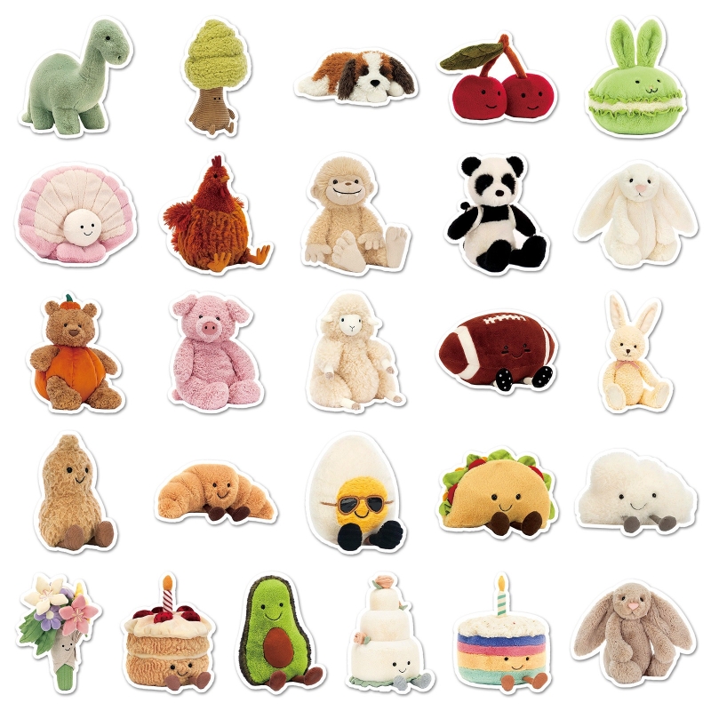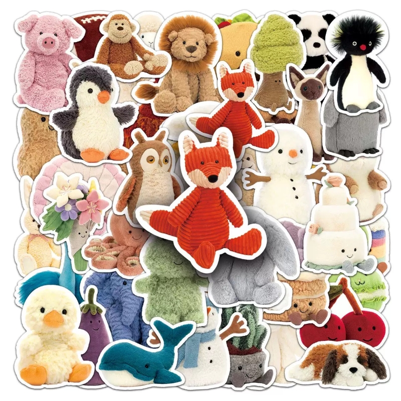 50张可爱毛绒邦尼小兔卡通动物形象设计装饰贴画保温杯行李箱DIY涂鸦手账本笔记本平板电脑滑板吉他遮丑贴纸