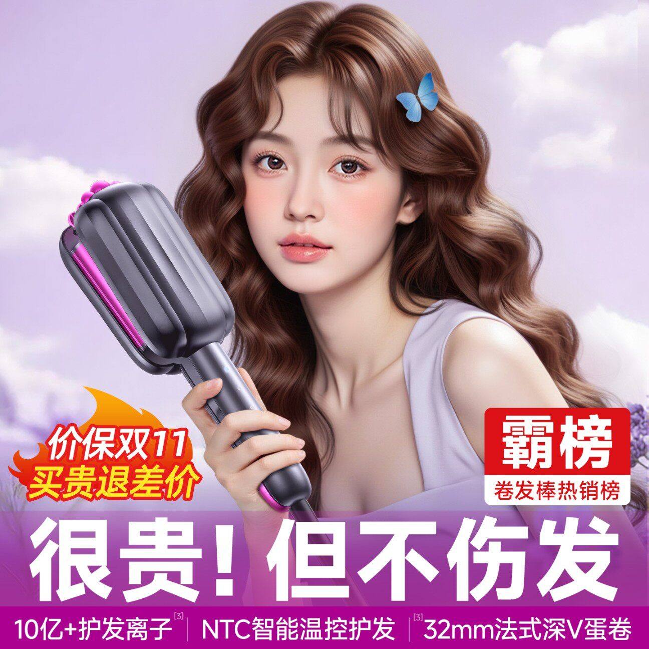 蛋卷头卷发棒32mm水波纹蛋卷棒蛋糕大卷负离子不伤发夹板卷发神器