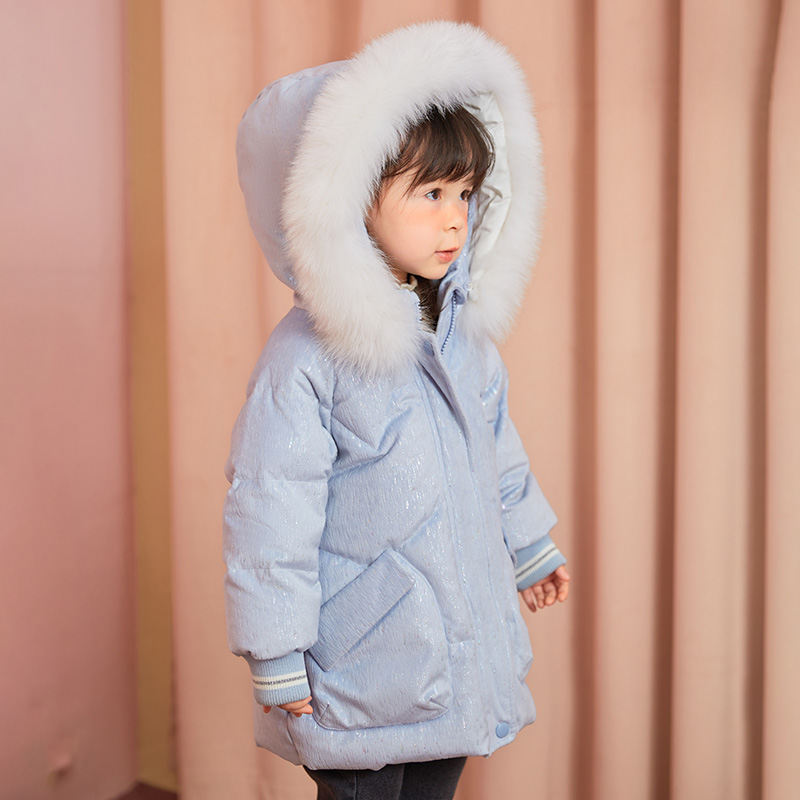 YUYBEIB儿童羽绒服中长款2022新款过膝加厚童狐狸毛领丝绒外套