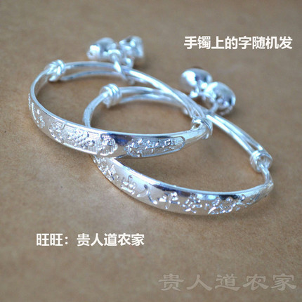 儿童手镯批仿白铜手镯仿925银手镯铃铛长命锁宝宝手镯礼物