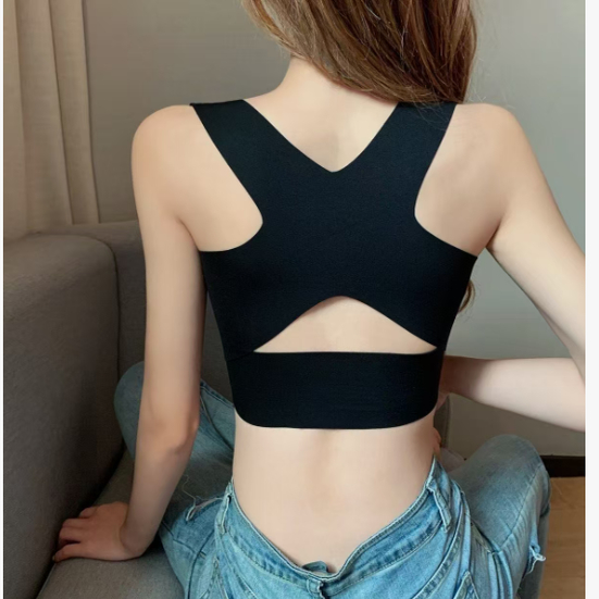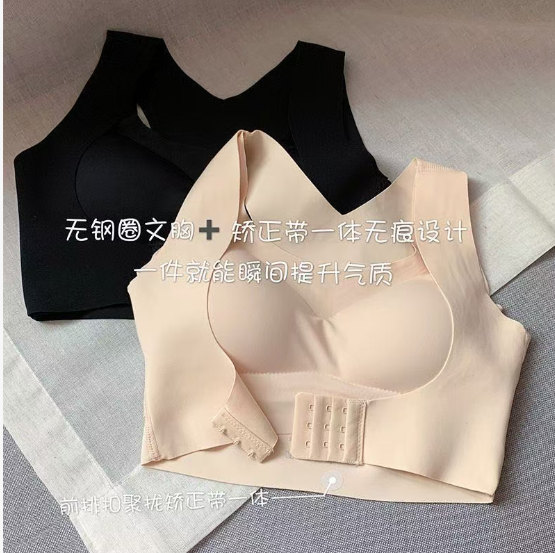 前扣一体抹胸式文胸无钢圈聚拢收副乳矫正驼背托胸二合一无痕内衣