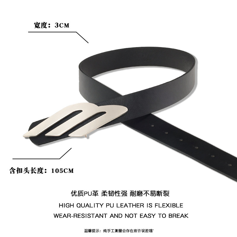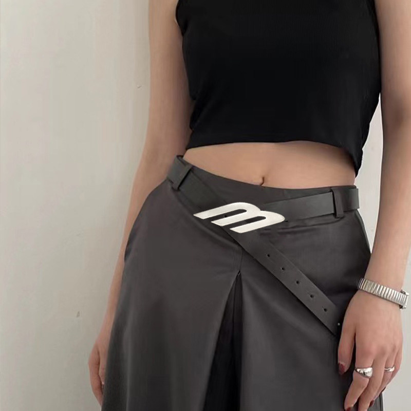 BWFA巴黎腰带男设计感小众潮流美式加厚倾斜M字母金属皮带欧美风