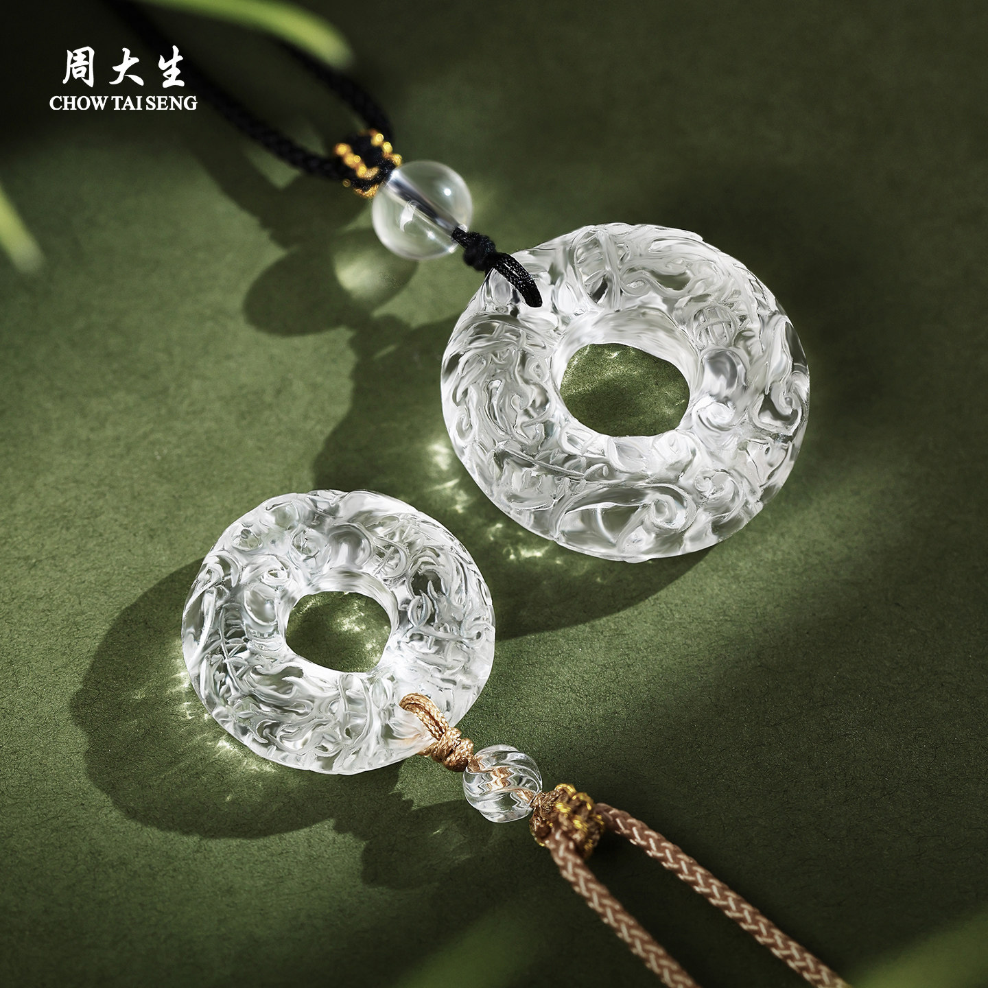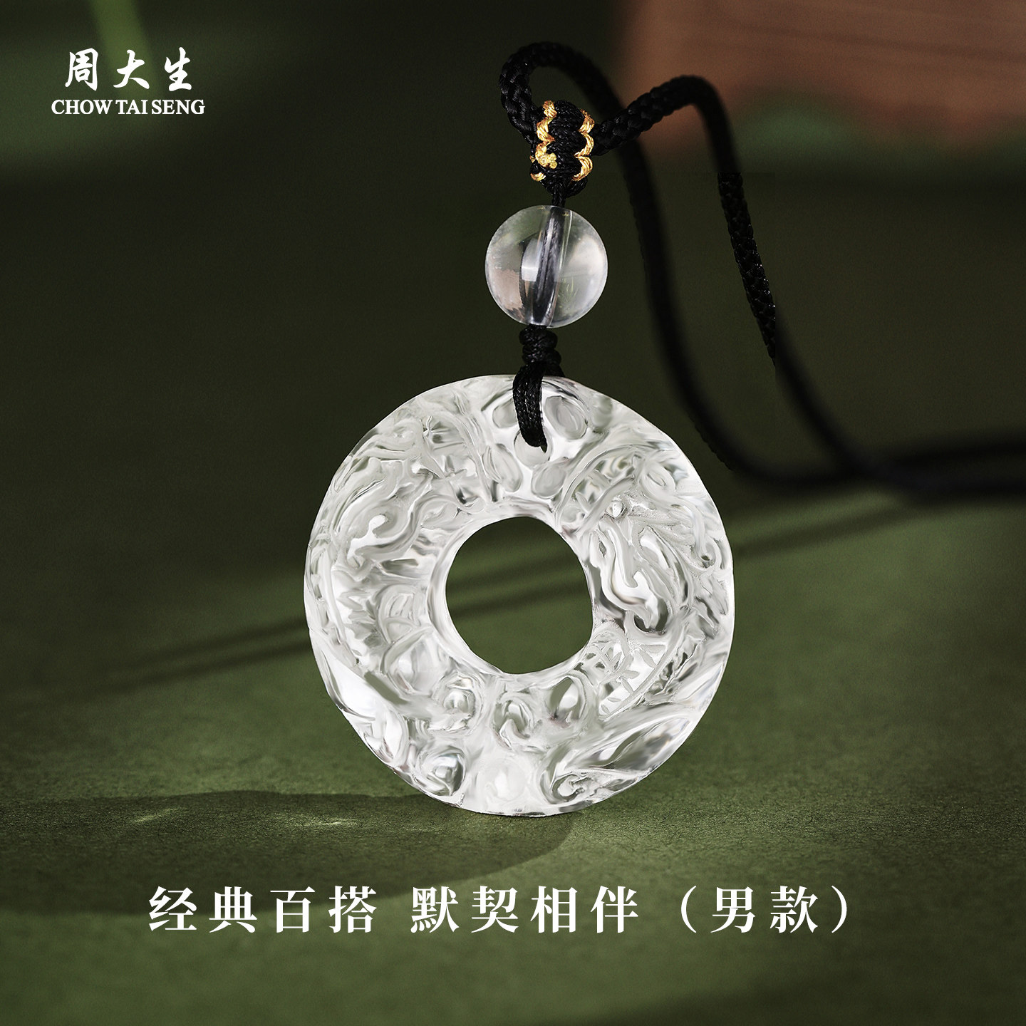 周大生官方天然白水晶平安扣腾龙纹情侣款吊坠生日礼物送女朋友