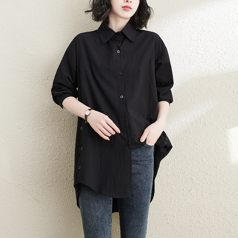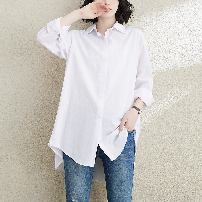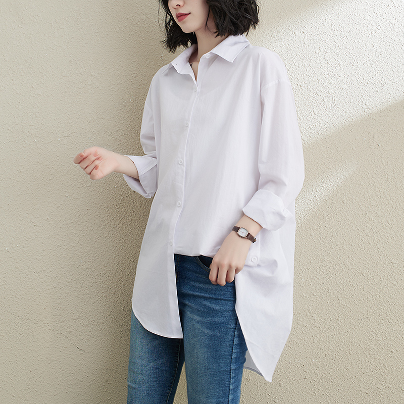 新款宽松长袖白衬衣百搭休闲慵懒风中长款外搭衬衫 宽松版开衫薄