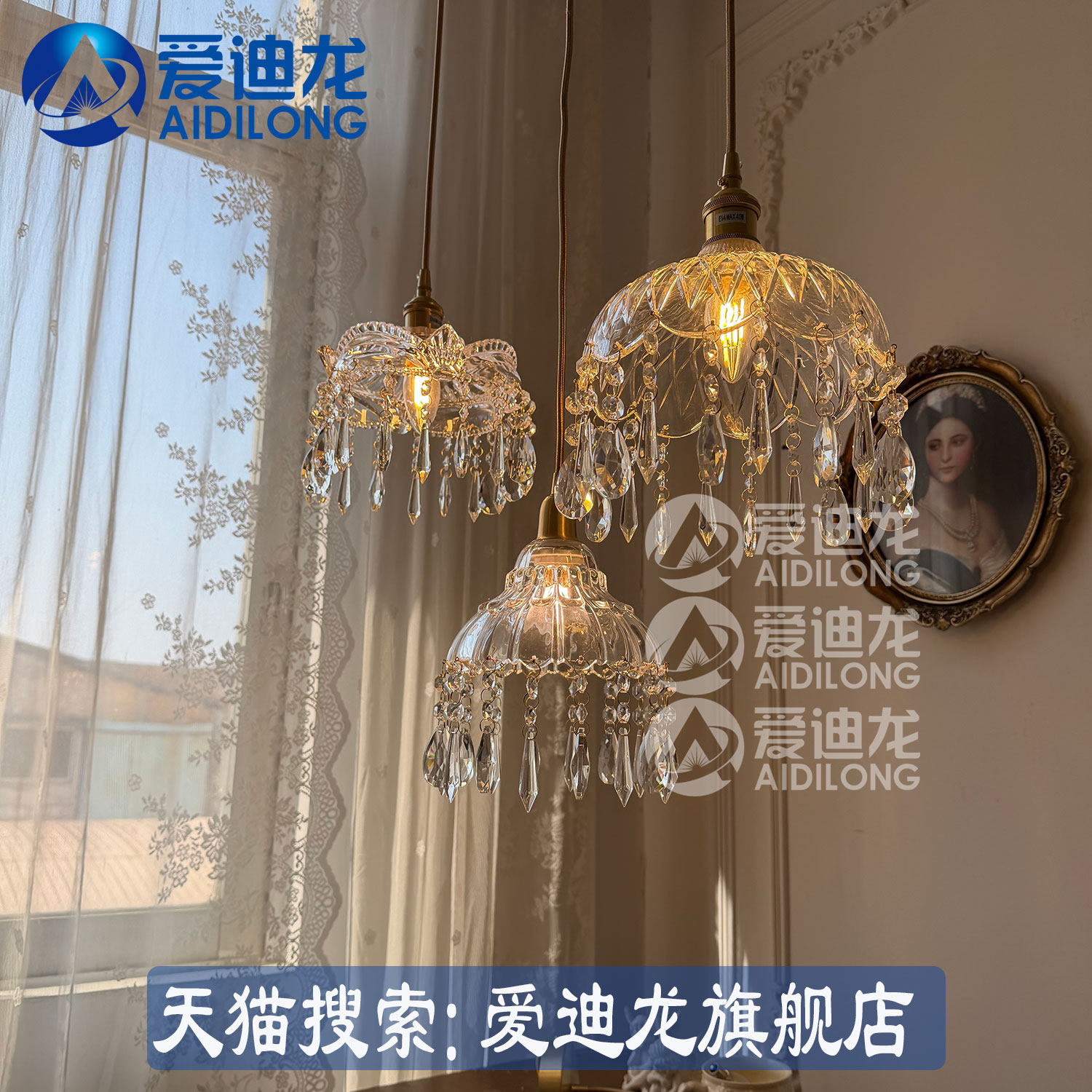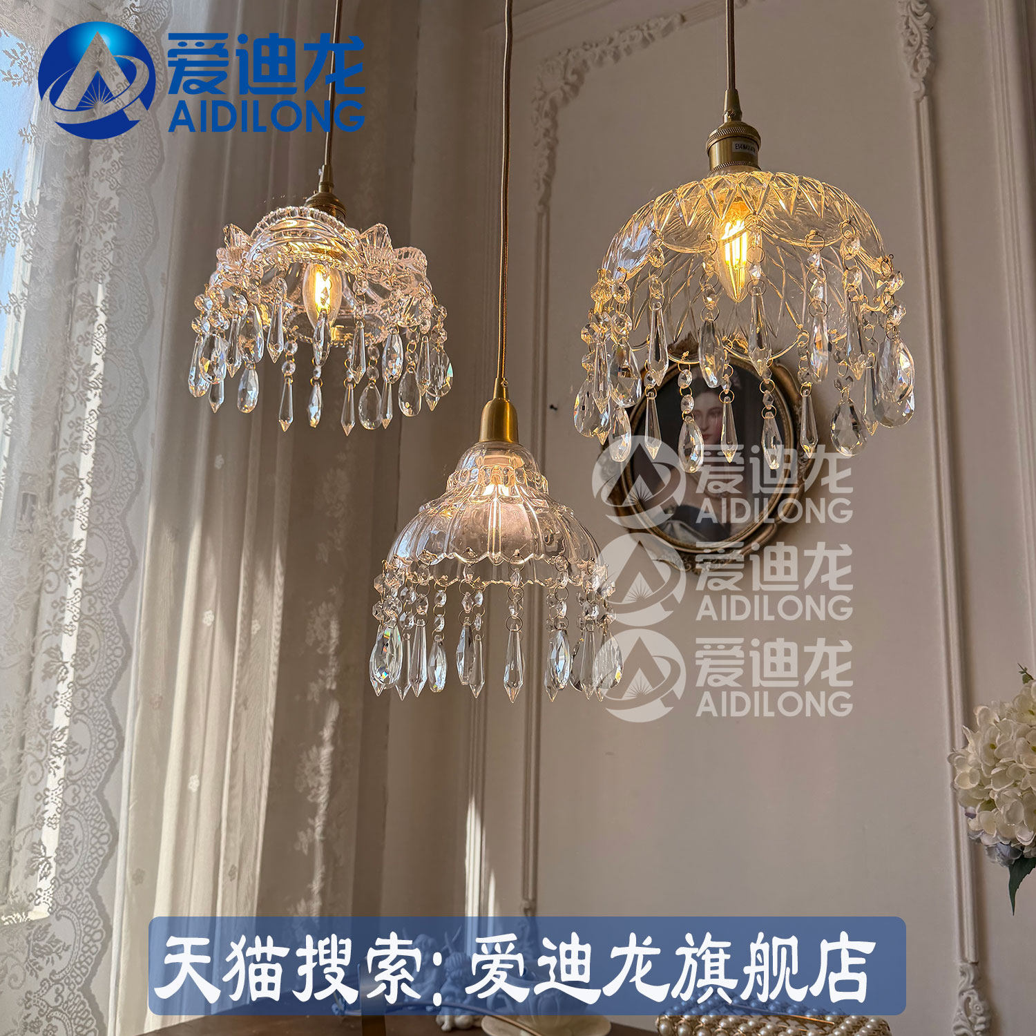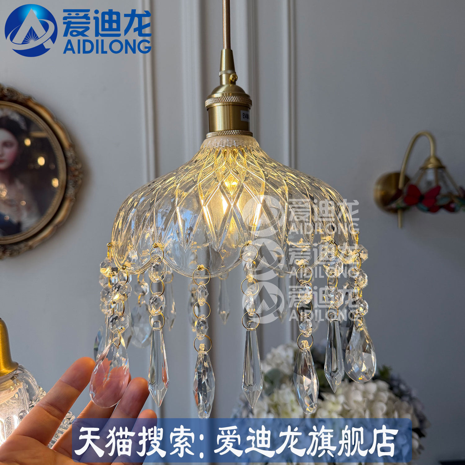 法式全铜复古水晶田园卧室床头书房过道阳台玄关吧台玻璃小吊灯