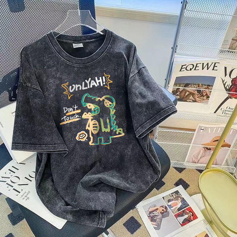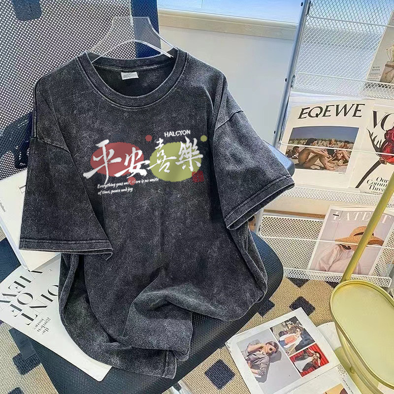 重磅水洗做旧短袖男款夏季纯棉宽松五分半袖ins美式嘻哈潮牌t恤衫