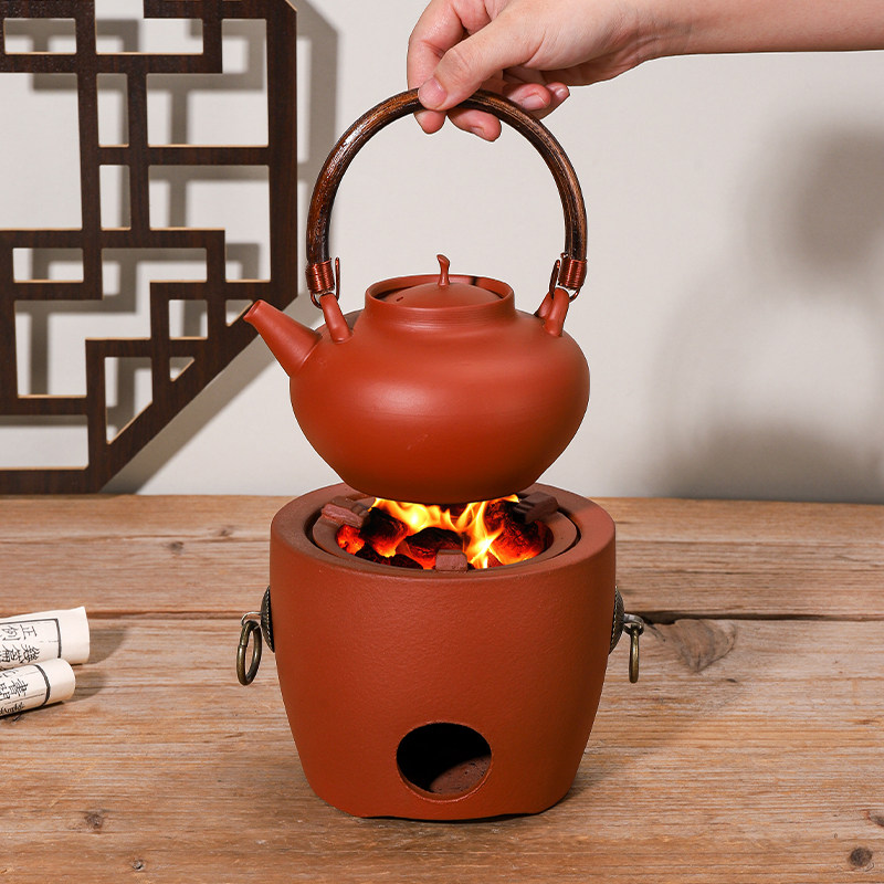 潮州红泥炭炉碳提梁壶酒精茶具套装围炉煮茶器具全套户外露营旅行