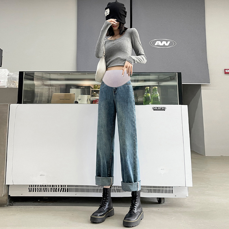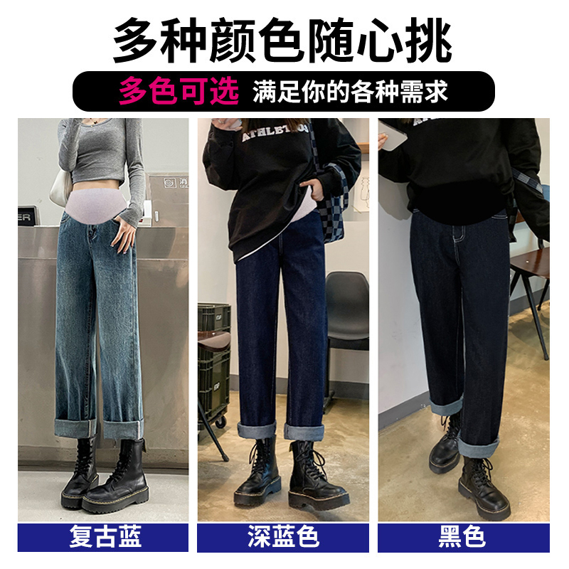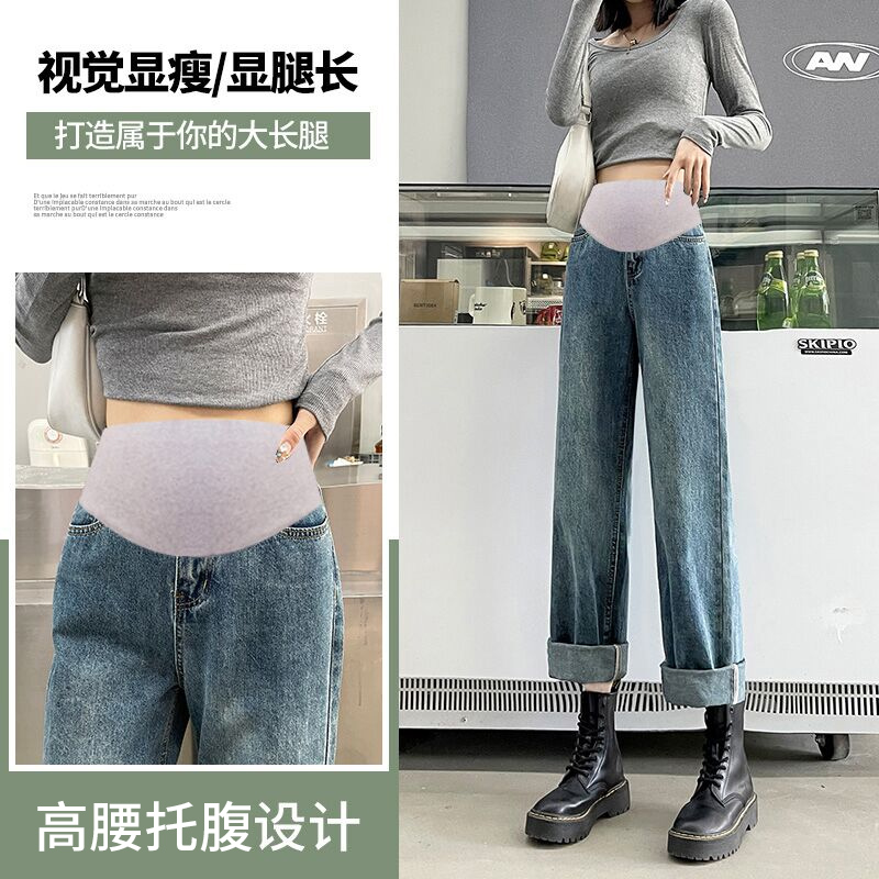 孕妇裤子女春秋款外穿牛仔阔腿裤春装大码打底休S闲裤直筒长裤春