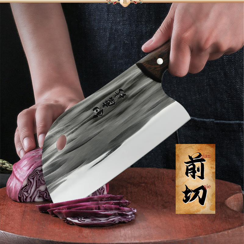 利磨坊菜刀家用锻打切肉切菜切片厨师斩切两用厨房刀具大号鱼头刀