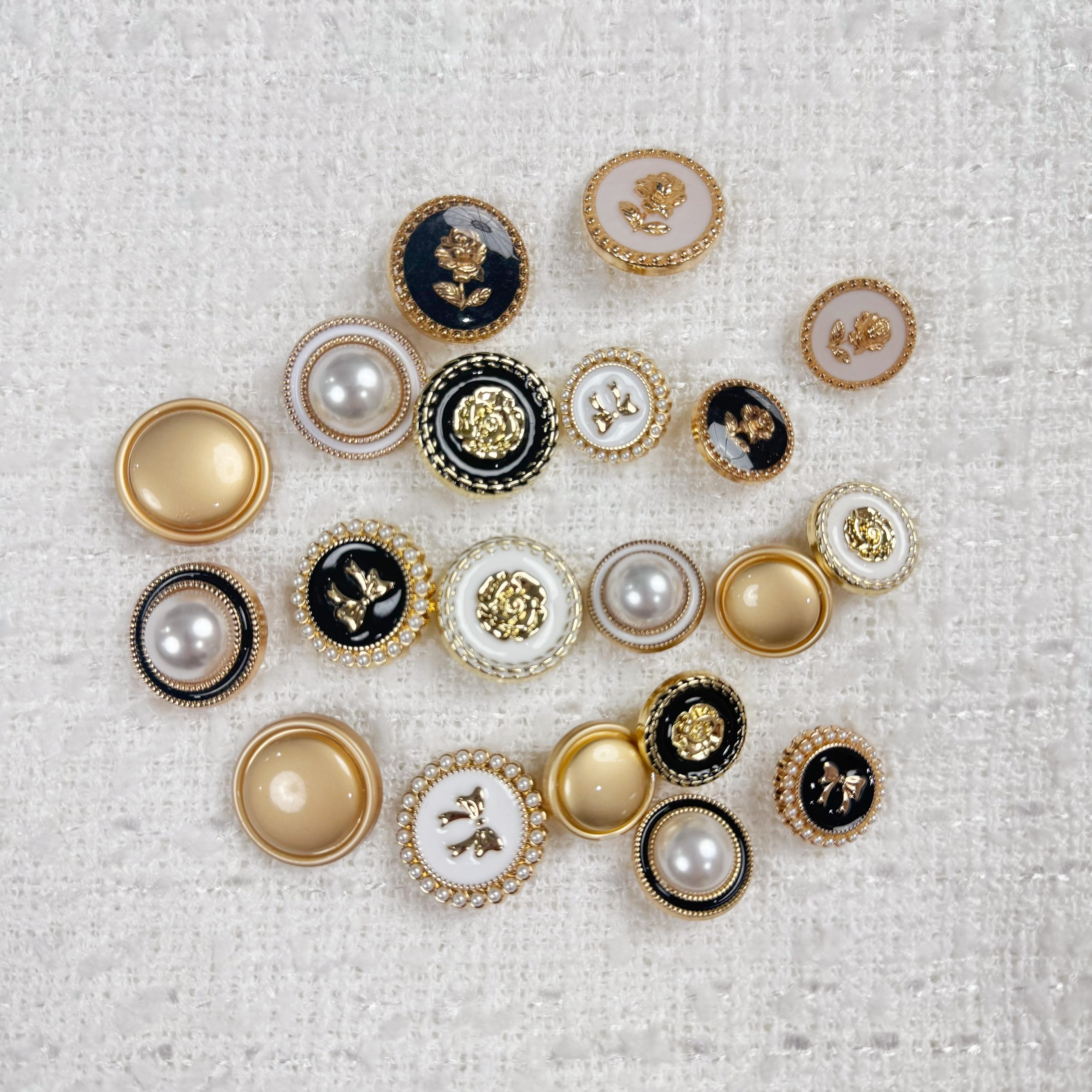 高档小香风金属黑白圆纽扣大衣外套门襟袖口珍珠扣子西服手工辅料