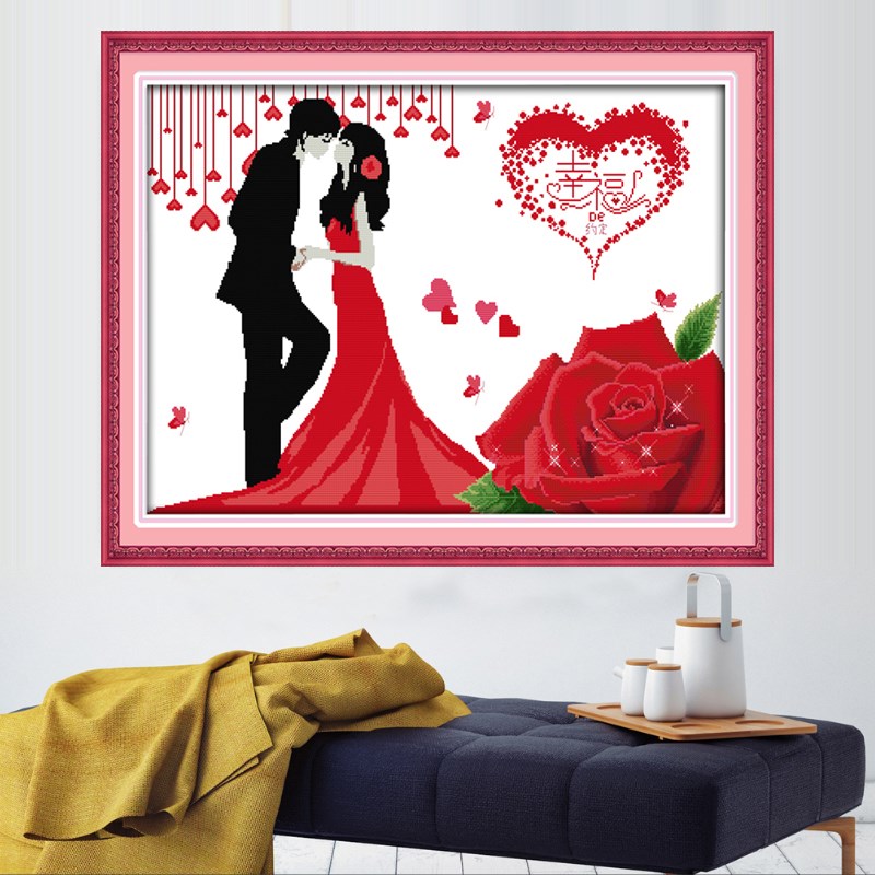 幸福约定2025清新款结婚水晶钻石画满钻客厅点贴钻十字绣情侣卧室