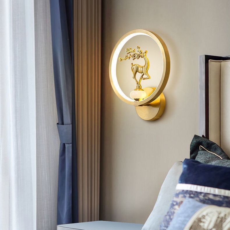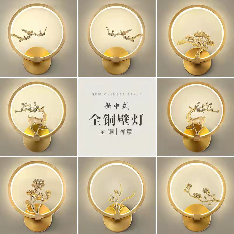 新中式壁灯全铜客厅电视墙楼梯过道简约创意2024新款卧室床头壁灯