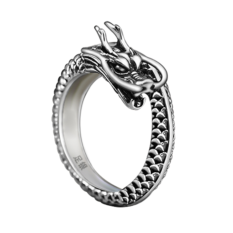 足银999龙戒指男款守护指环复古龙头戒立体手雕龙纹介子霸气饰品