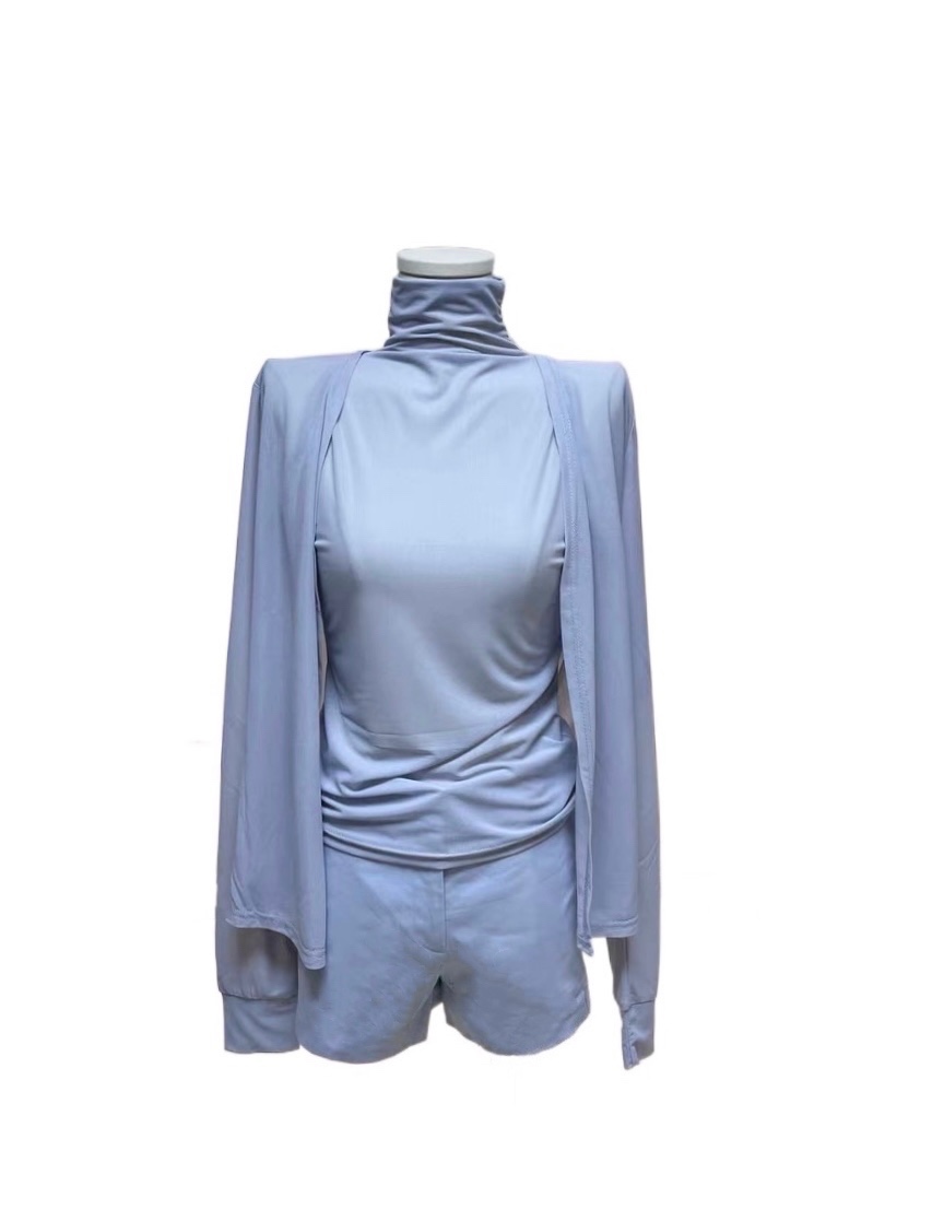 lovingu 夏季超美的时尚气质蓝色系尼龙开衫套装染色休闲短裤女