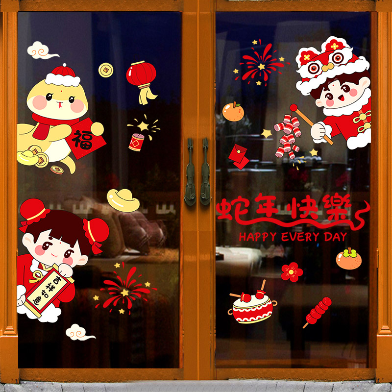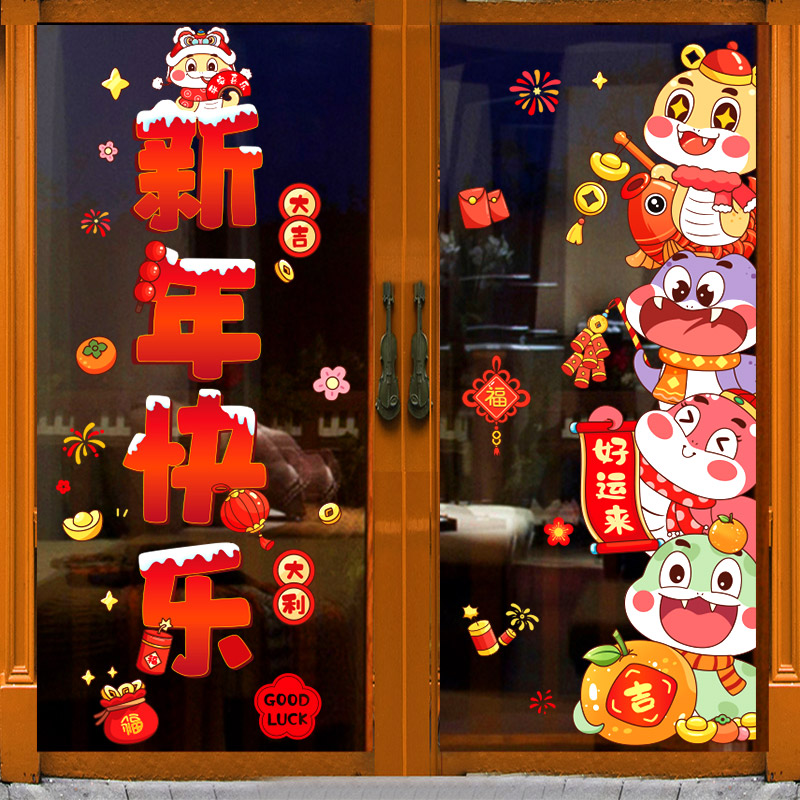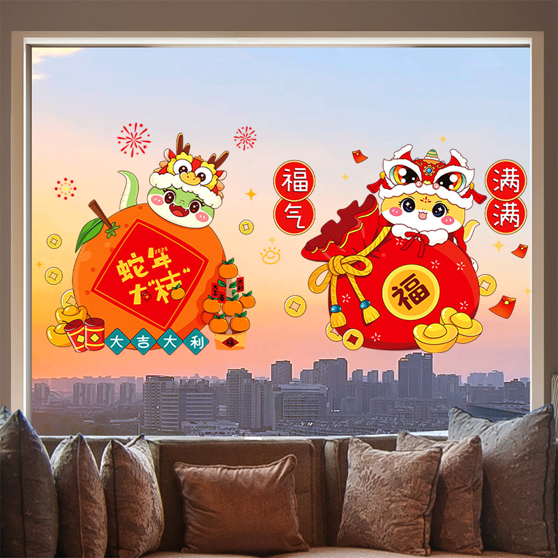 进门发财新年装饰对联玻璃门贴纸创意出门见喜电梯门贴画2026马年