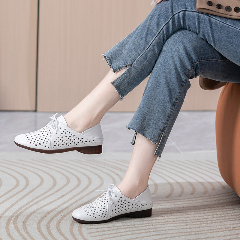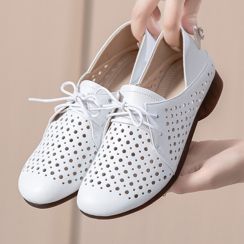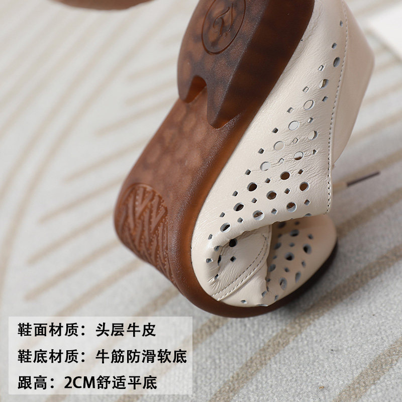 中老年妈妈鞋真皮包头凉鞋女春夏镂空休闲小白鞋软底宽胖肥脚女鞋