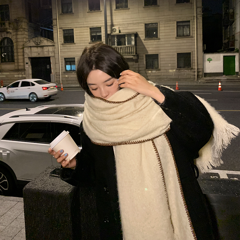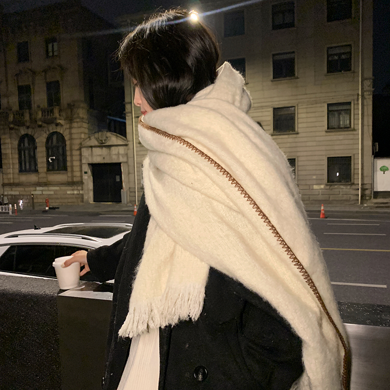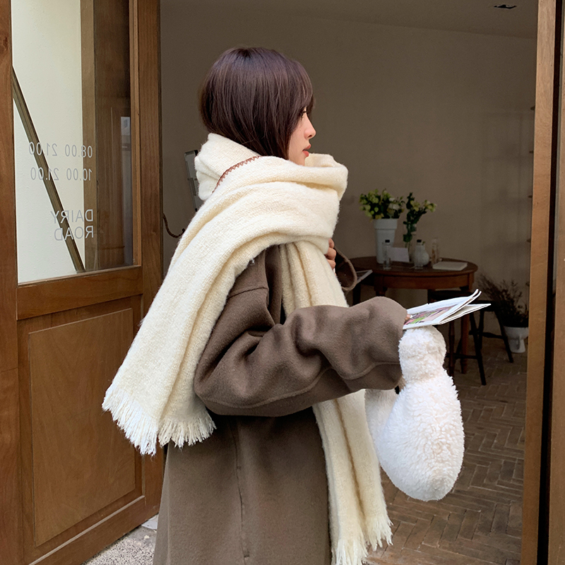 西本软糯仿羊绒围巾女冬季学生纯色百搭围脖披肩两用加长保暖男生