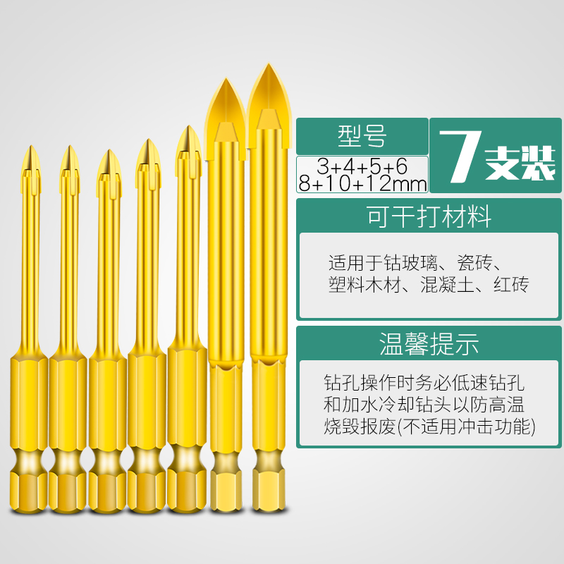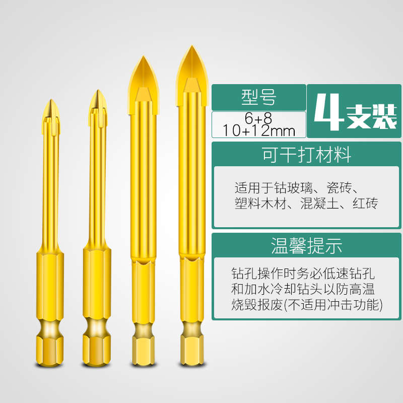 瓷砖钻头套装玻璃混凝土水泥墙壁电钻打孔多功能麻花钻转头四刃钻