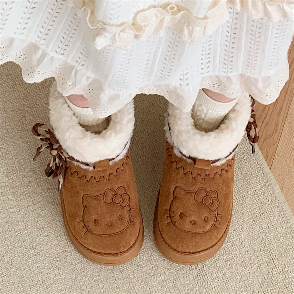 细细条 复古加绒时尚KT猫雪地靴新款女冬室外正版HelloKitty短靴