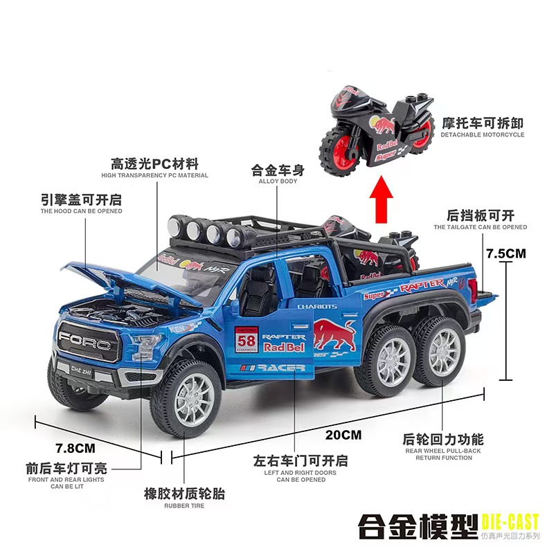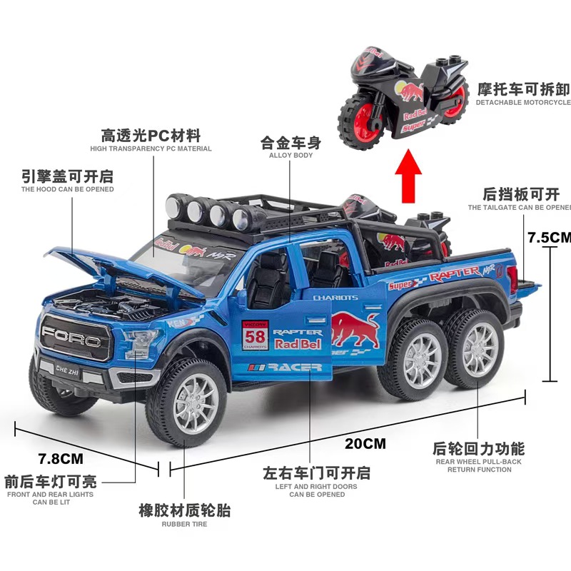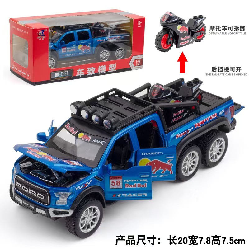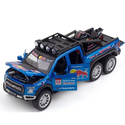 大号红牛版福特猛禽皮卡合金汽车模型回力声光玩具越野卡车包邮