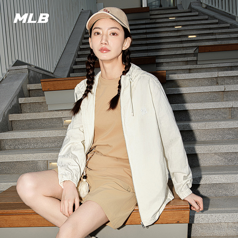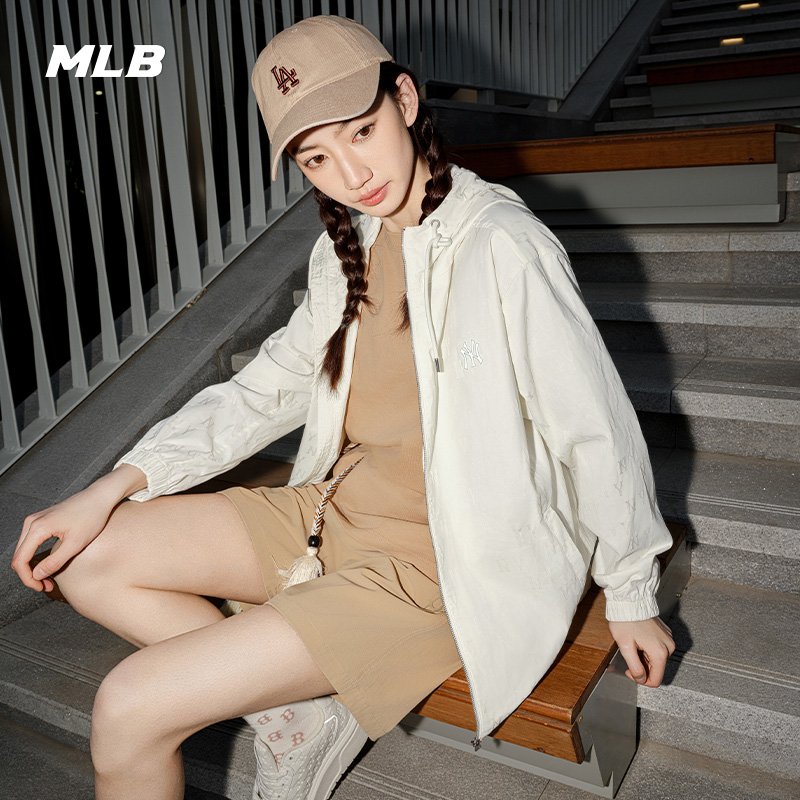 MLB官方 男女百搭暗纹老花连帽拉链时尚舒适外套25夏季新款WJM04