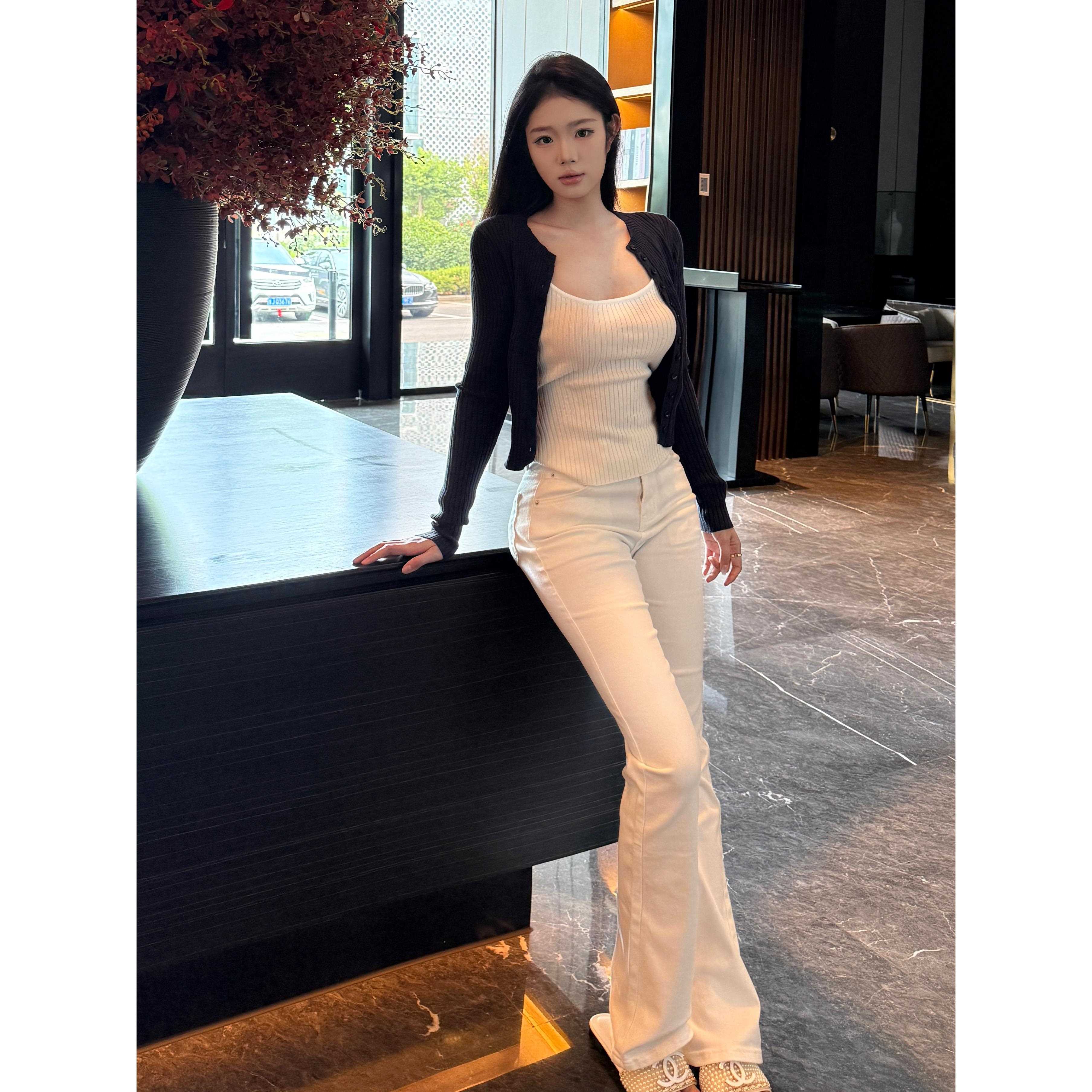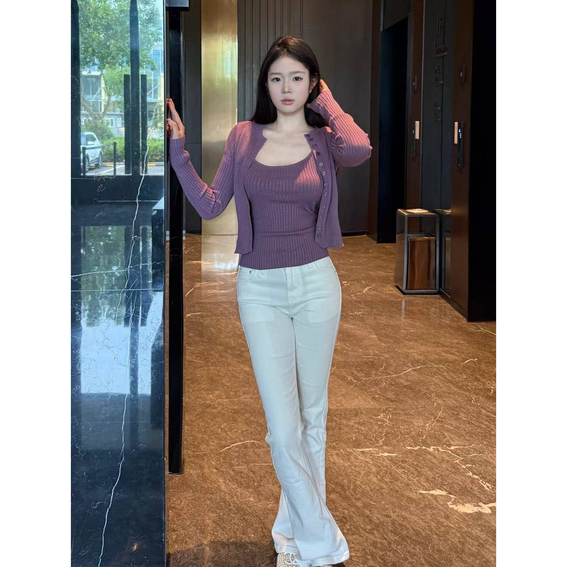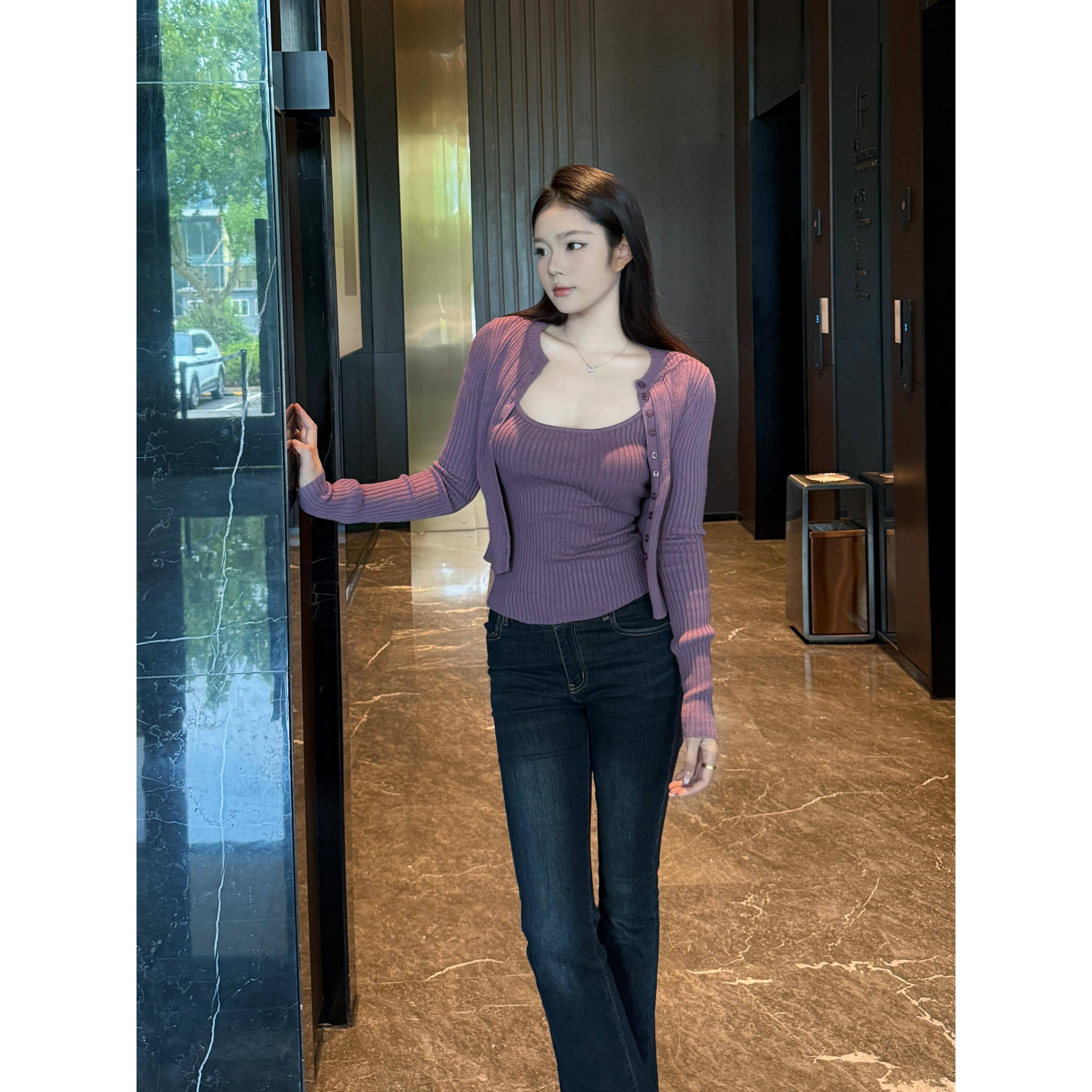AWMUMU纯欲风性感辣妹针织开衫吊带套装女修身显瘦背心上衣两件套