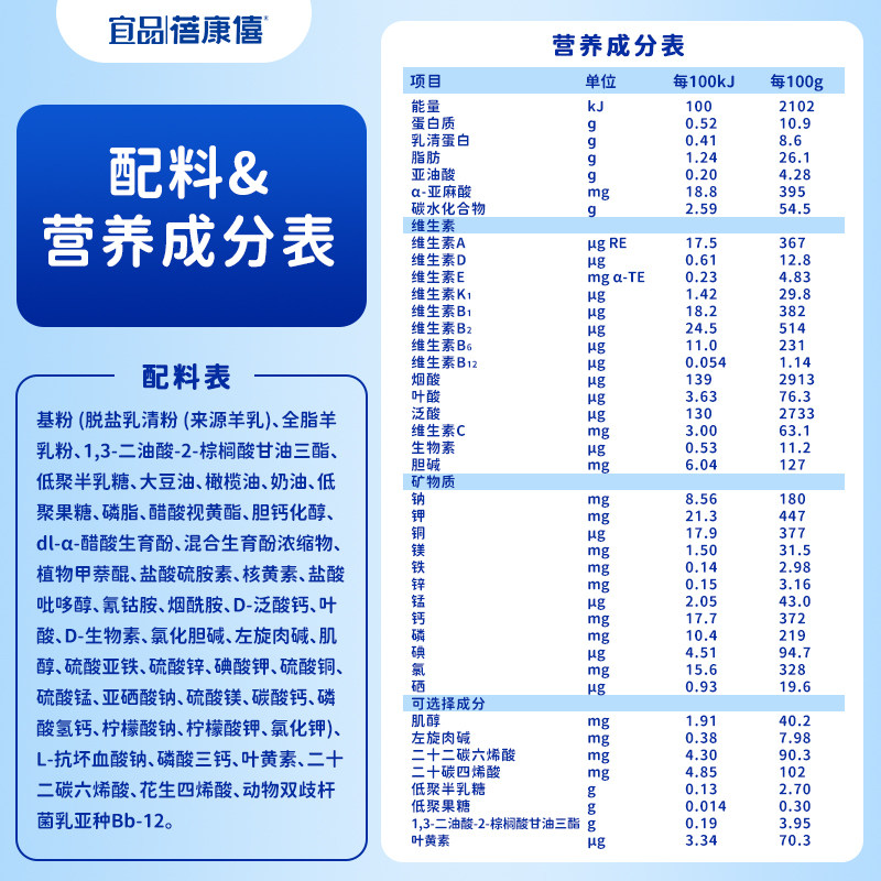 宜品蓓康僖启铂婴幼儿配方羊奶粉1段150g+300g0-6个月宝宝优质OPO