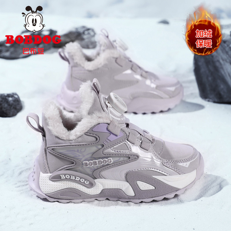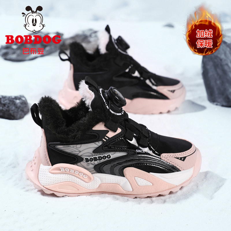 巴布豆女童运动鞋2025新款秋冬季中大童皮面防水轻便儿童跑步鞋潮