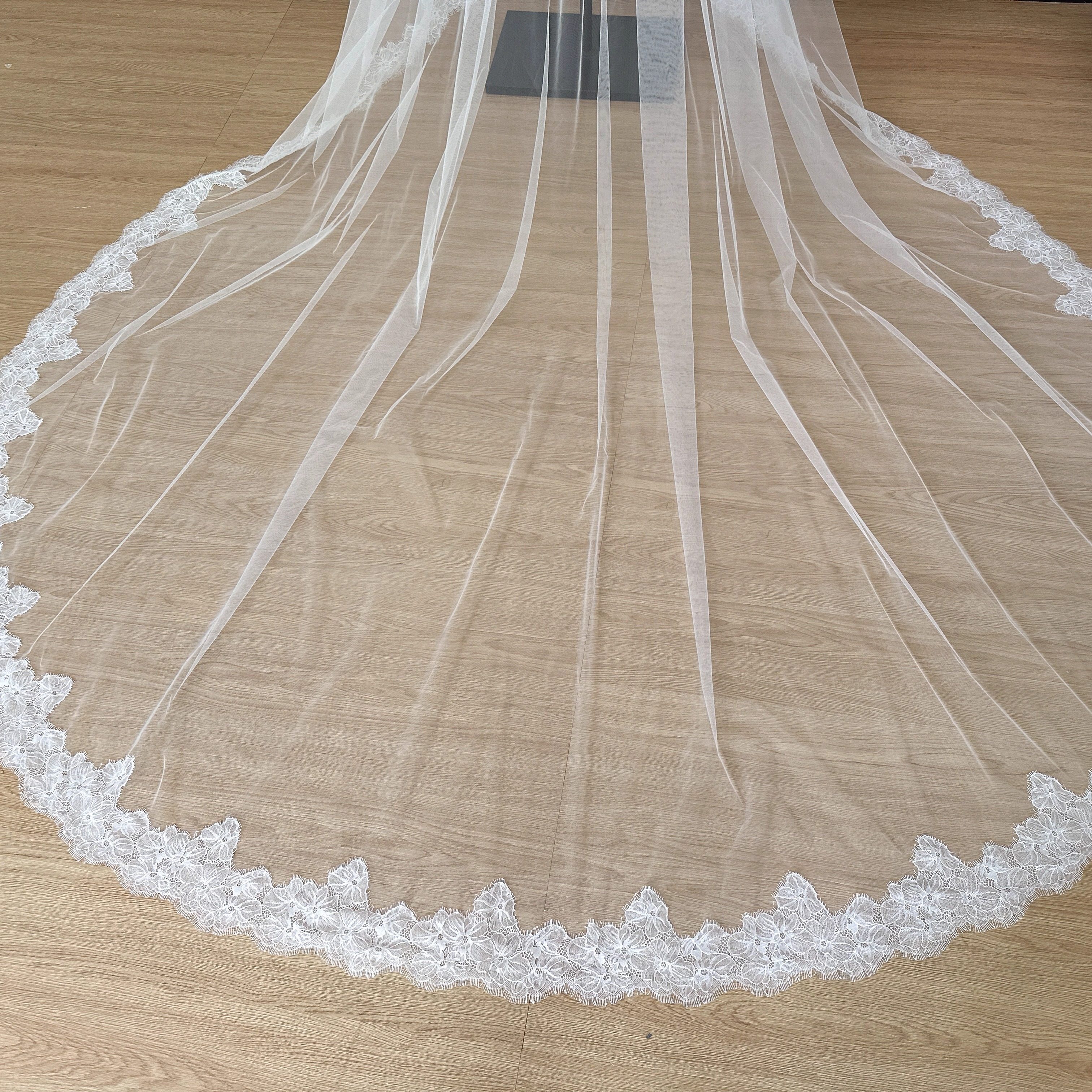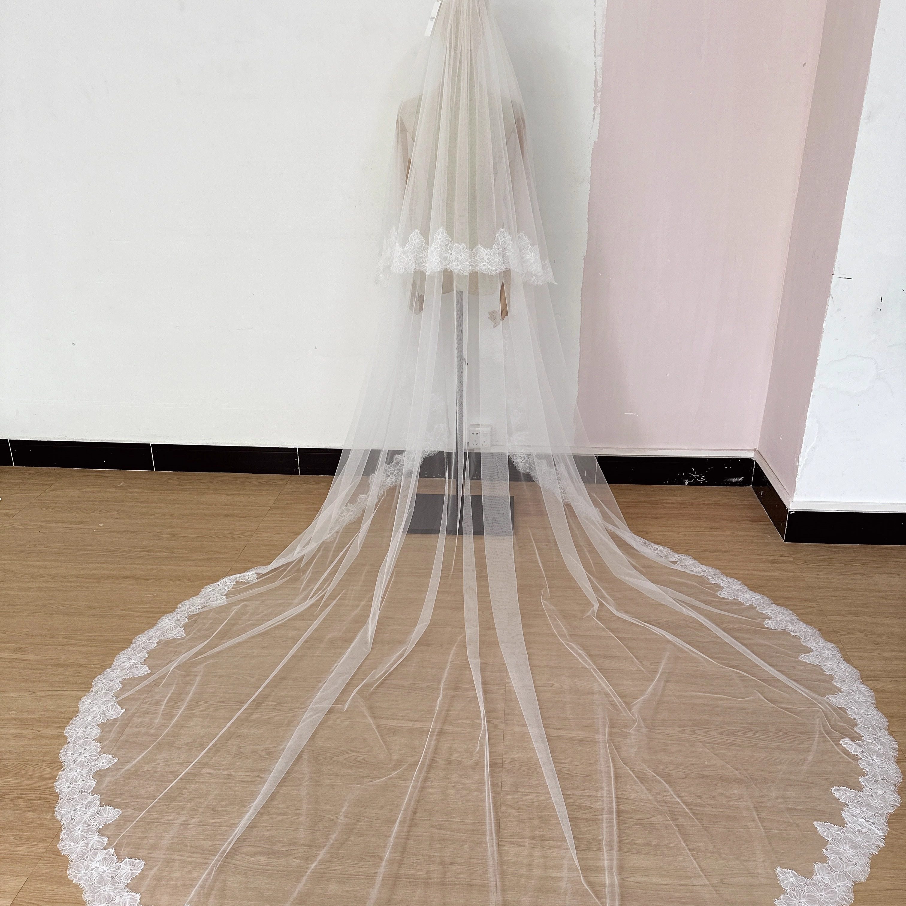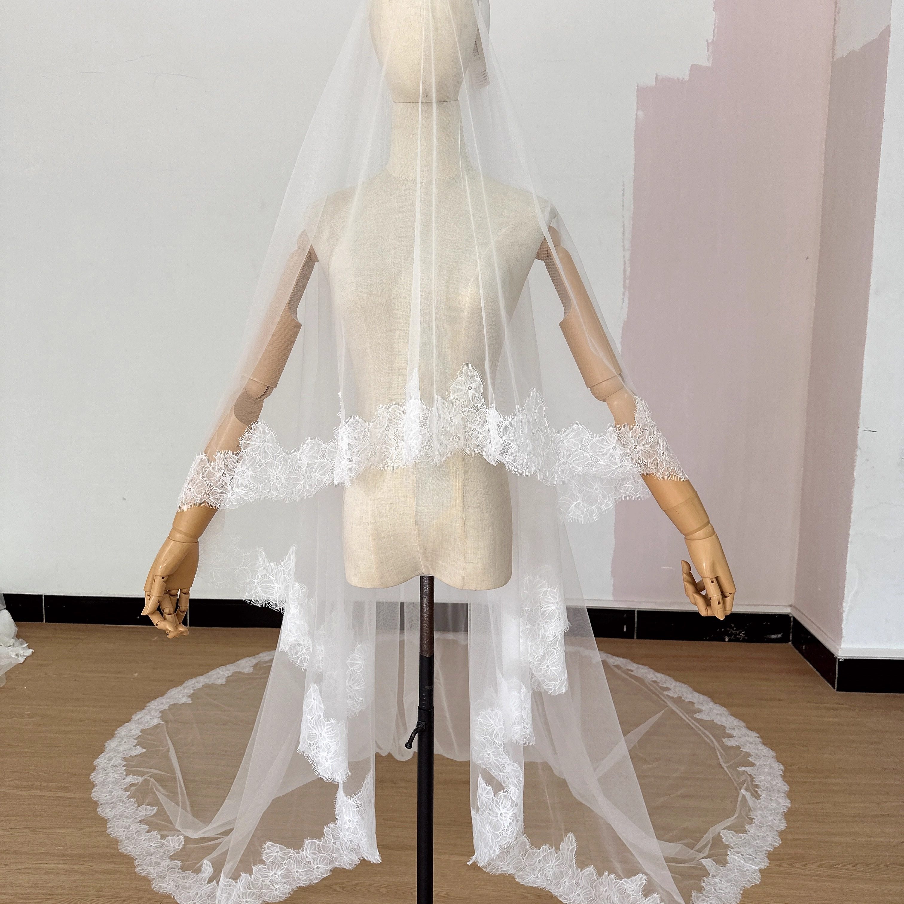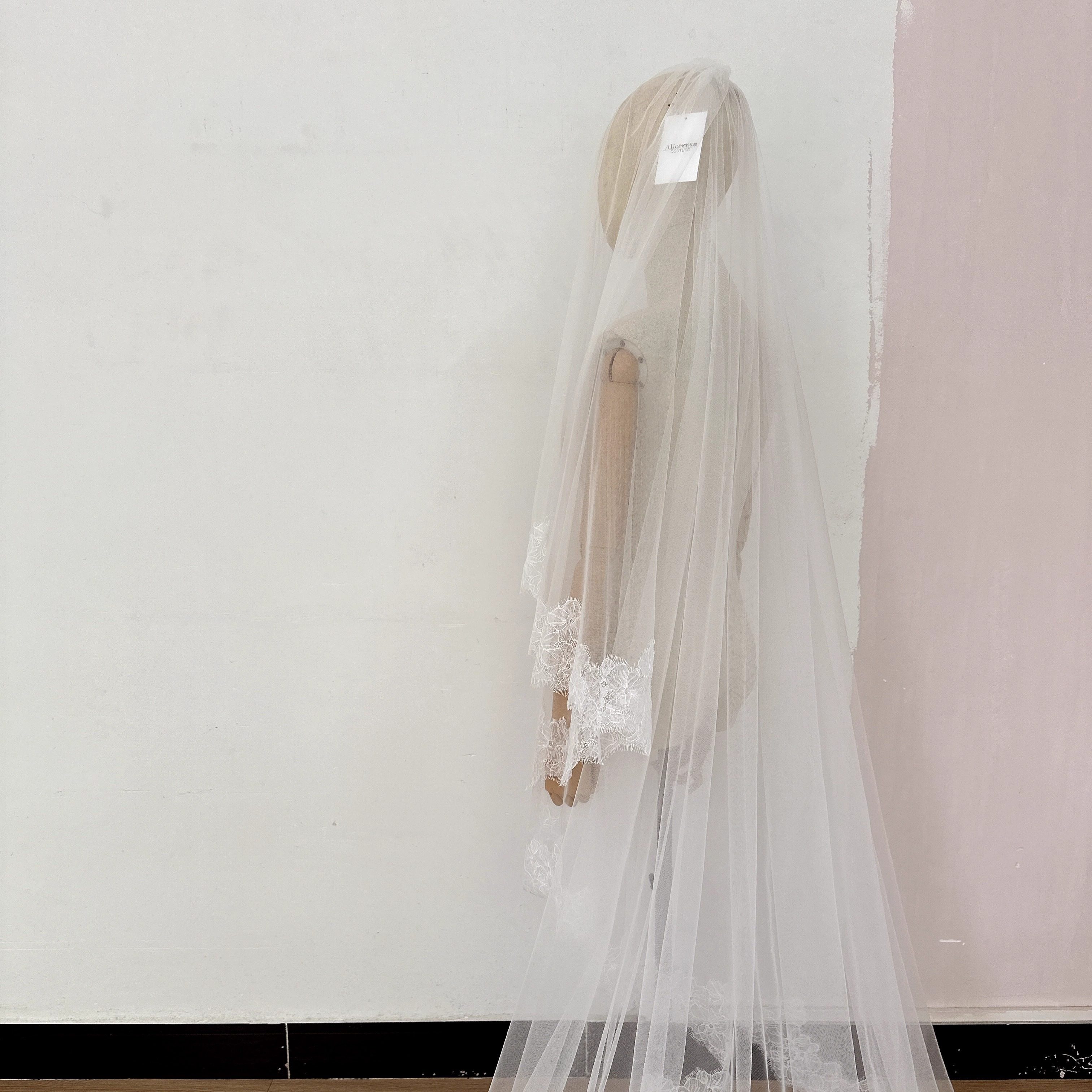 新娘复古宫廷蕾丝长拖尾头纱精致睫毛边婚纱配饰森系婚礼道具