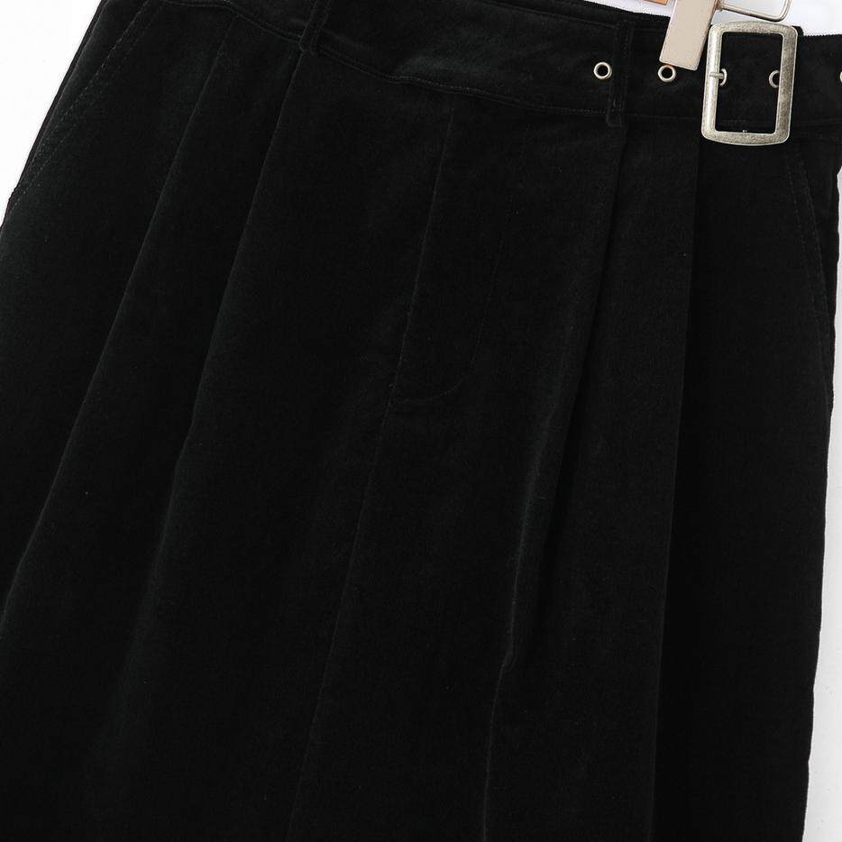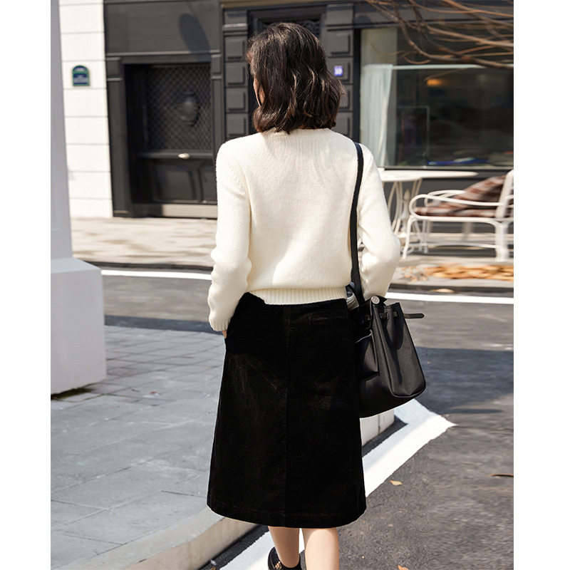 早秋新款时尚百搭灯芯绒半身裙高腰宽松小黑裙口袋A字裙小个子裙