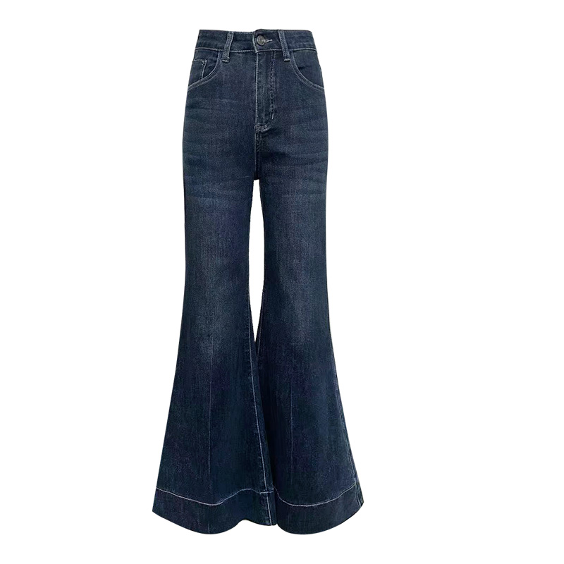深蓝色微喇叭阔腿裤牛仔宽松长裤