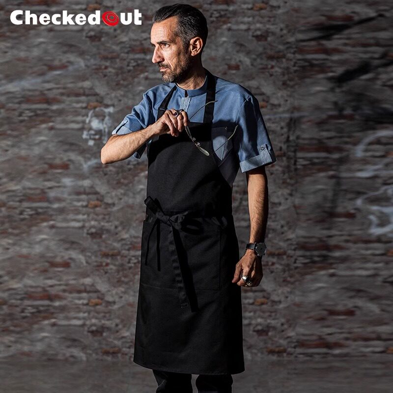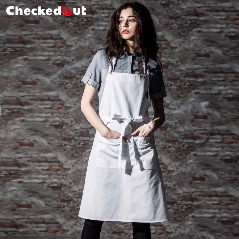 韩版时尚挂脖围裙厨房系带烘焙西餐厅咖啡店围裙工作挂脖可绣LOGO